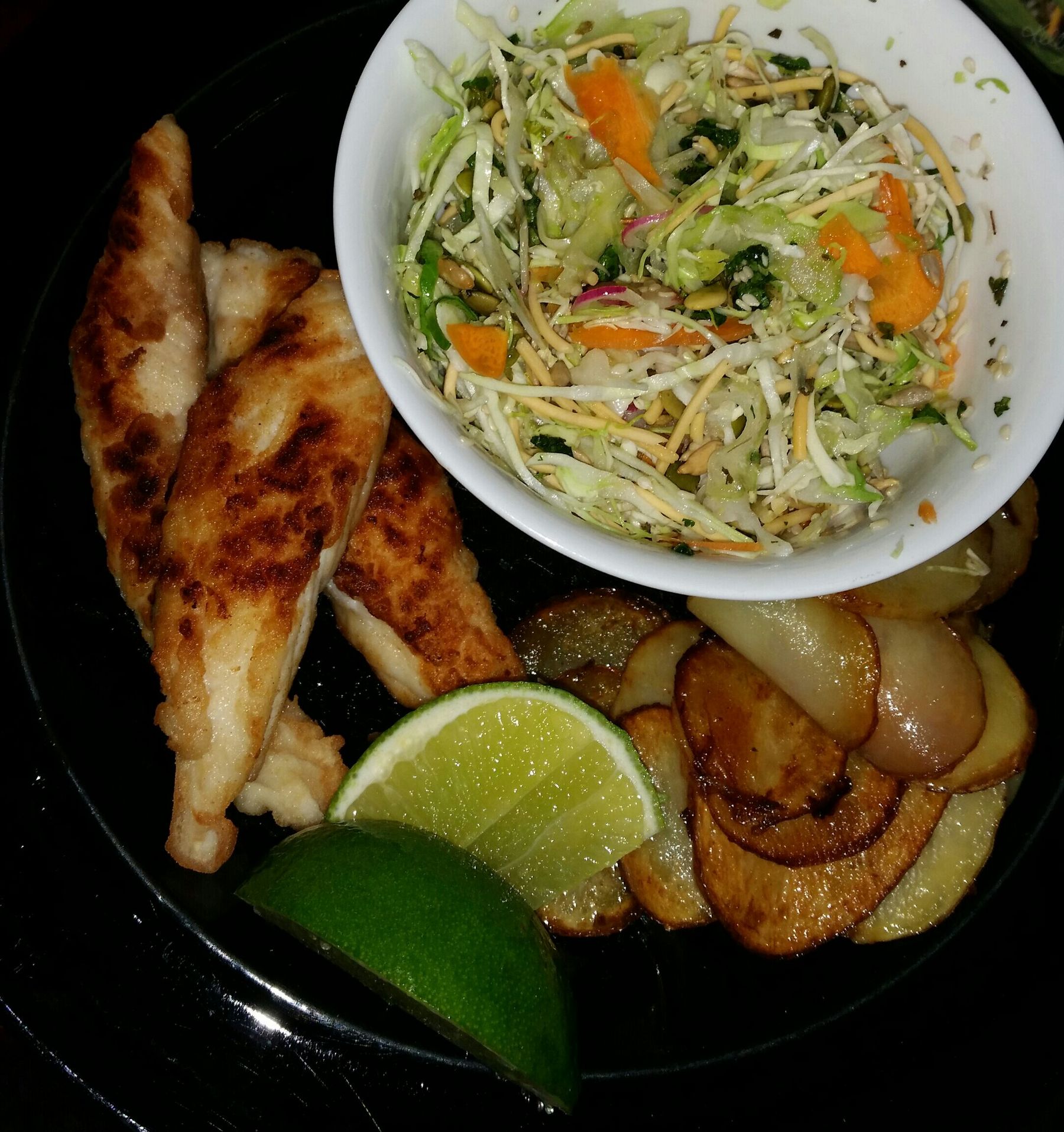 This is a favorite Sunday dish. With a light and tasty salad to enhance your fresh fish whether bought or caught.