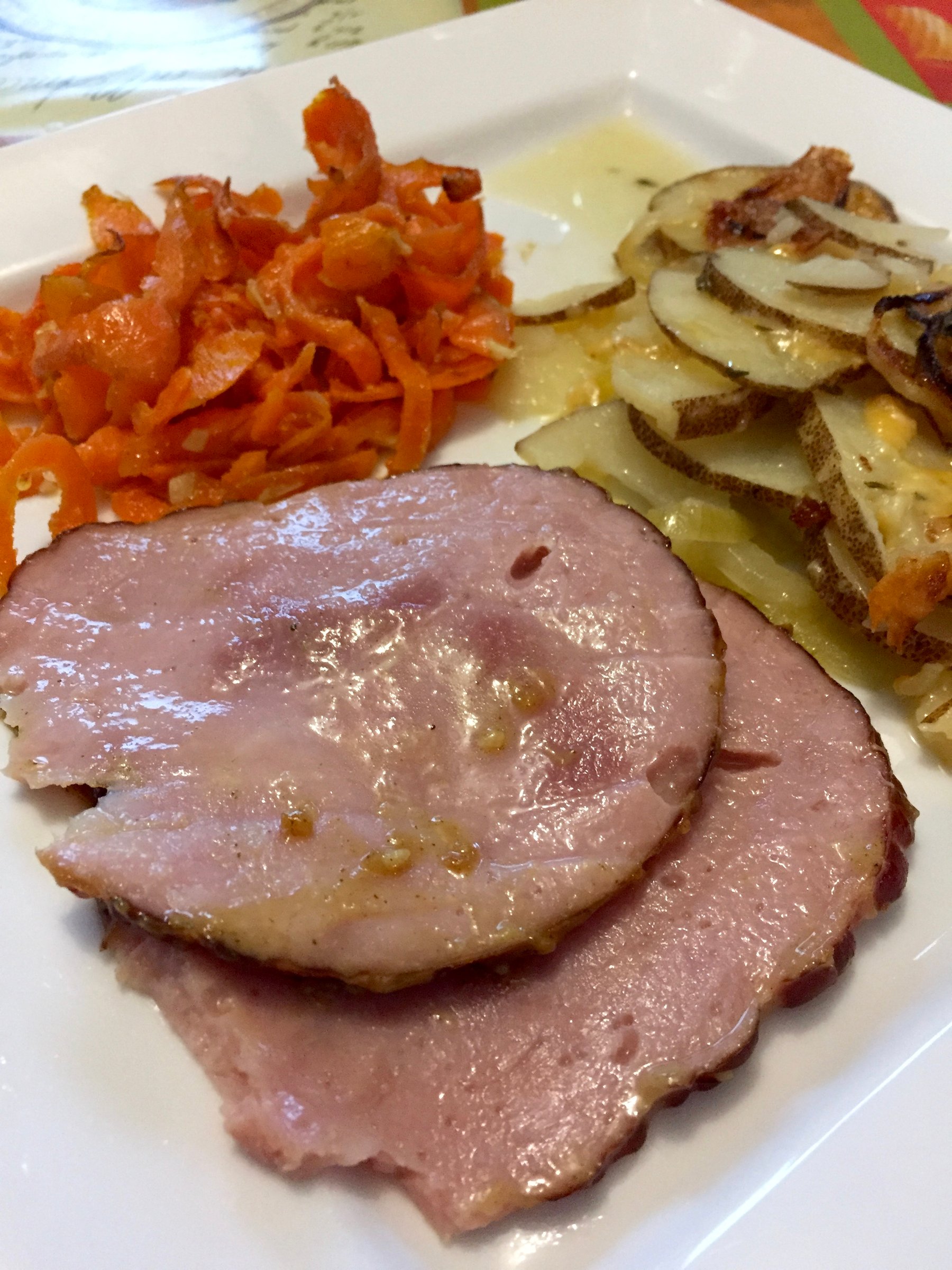 This is a perfect inexpensive Easter Ham dinner! It has the sweet maple flavour with the tangy mustard flavour that really compliments the ham.