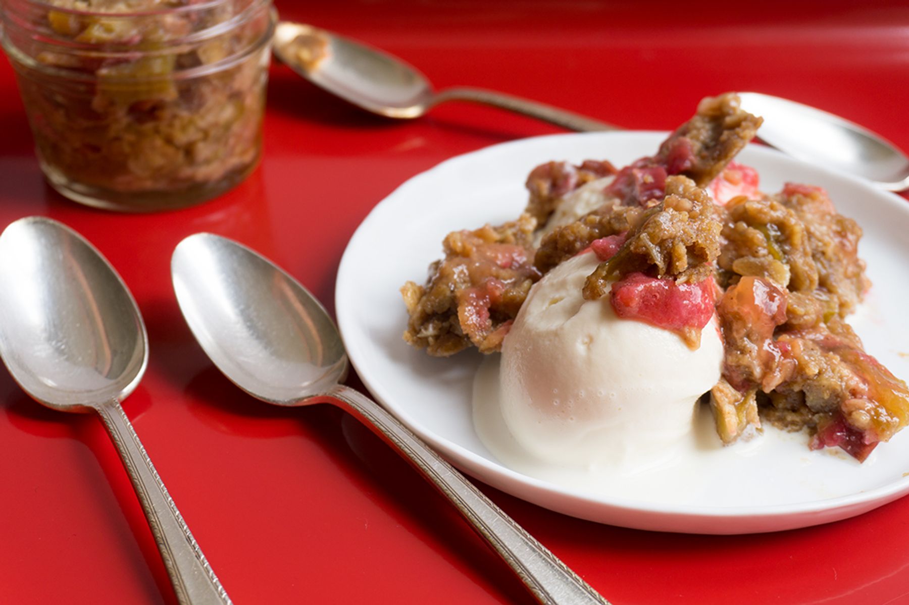 It’s different from your typical rhubarb crisp – at least from the one I grew up with. This one has a bottom crust and a top crumble – which is maybe why it’s called a crunch instead of a crisp!