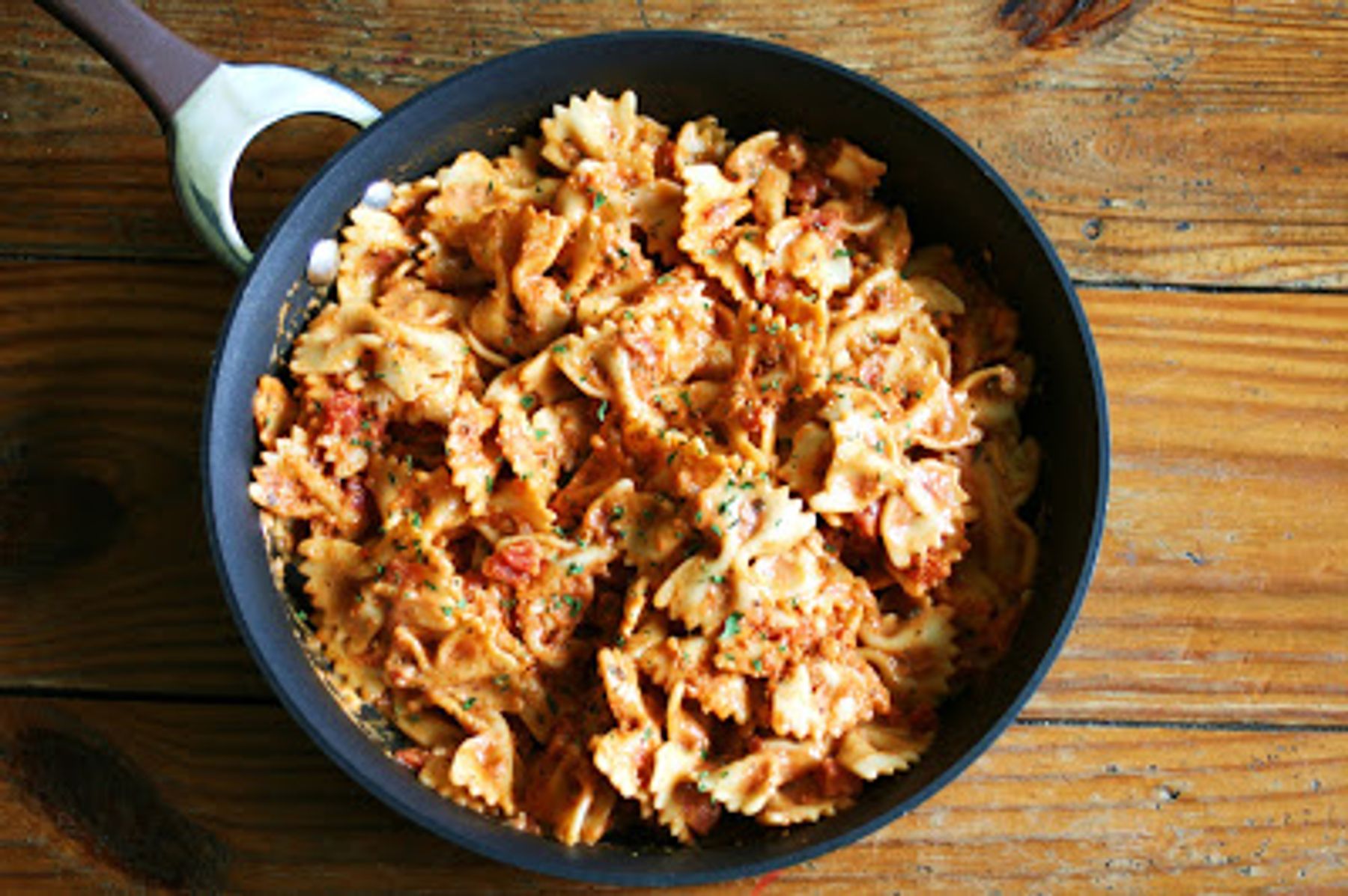 One Dish Creamy Tomato Bow Tie Pasta Skillet