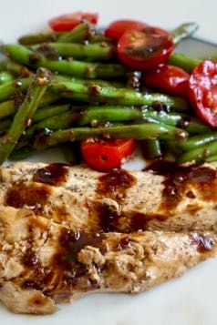 - In a large mixing bowl, whisk together the salad dressing, balsamic vinegar, honey and red pepper flakes. Set aside.