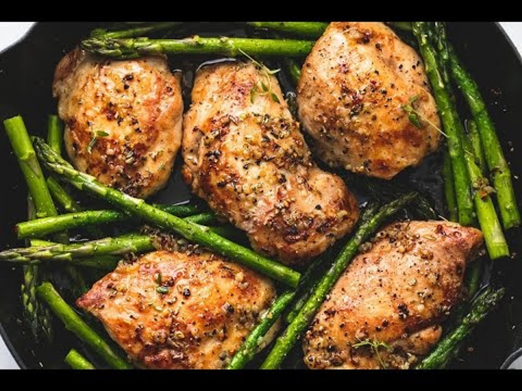 This 20 minute one pan garlic herb chicken and asparagus is full of rich, buttery herb flavors with both chicken and asparagus all cooked in one skillet.