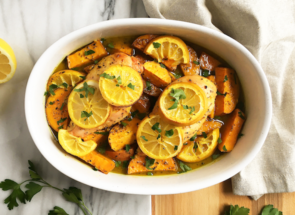 Easy and simple no-fuss meal with classic Greek flavors – lemon, olive oil, oregano. This one-pot dish is revamped with the addition of sweet potatoes, chicken breasts, and turmeric to provide maximum health benefits!