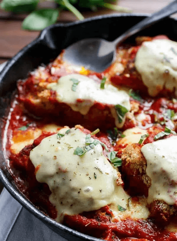 One Pan Mozzarella Stuffed Chicken Parmesan