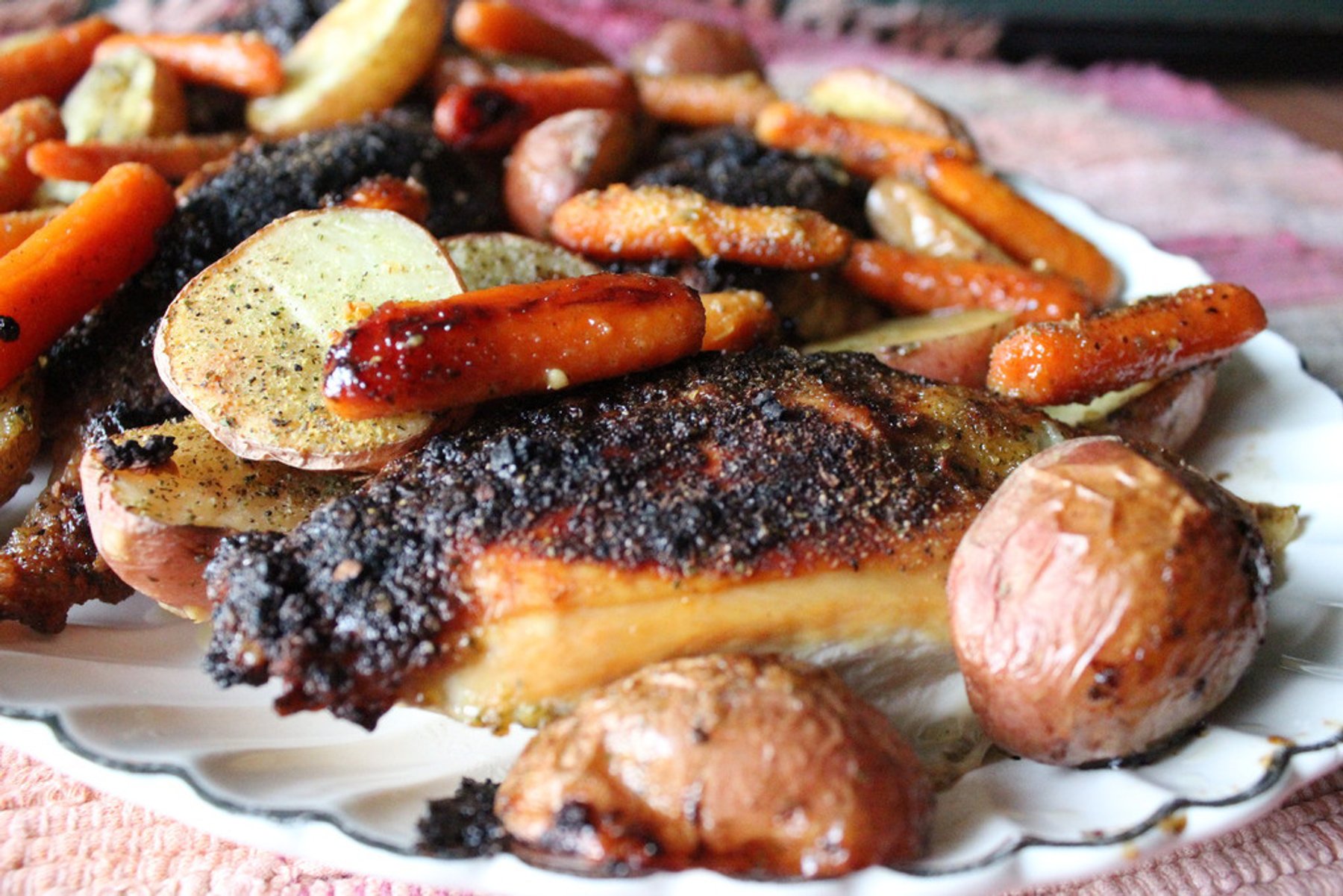 A simple, tasty one pan meal of chicken, potatoes, and carrots.