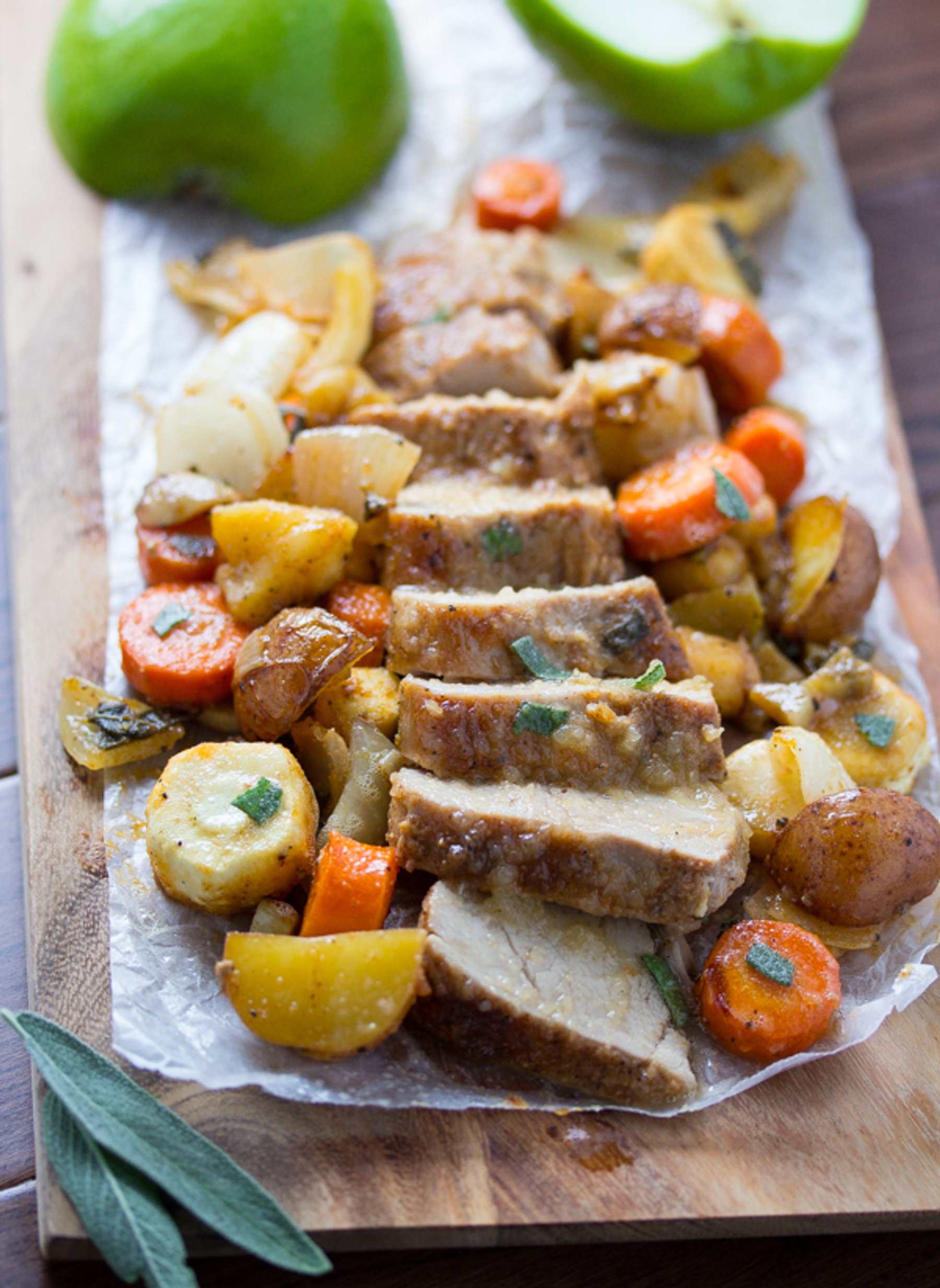One Pan Roasted Pork Tenderloin with Apples, Sage, and Root Vegetables