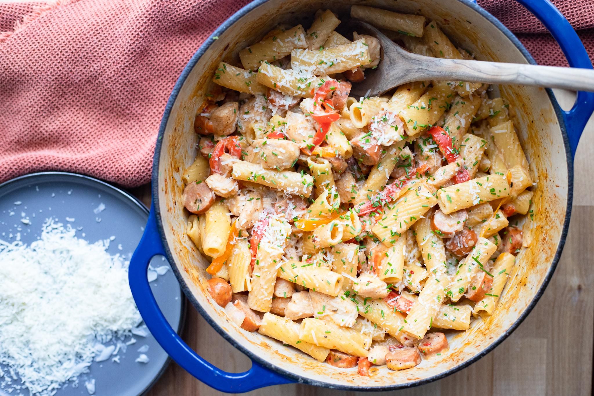 This easy weeknight cajun chicken pasta is made with spicy seasoned chicken breasts and andouille chicken sausage, so it's not short on flavor. Cream cheese makes it creamy and cuts some of the spice, and it's so so good. Best of all, it's made in one pot, so there's minimal clean-up. View recipe here!