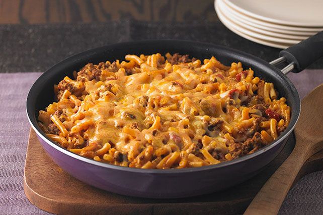 - Brown ground beef and onion; add garlic. Cook 2 minutes more. Drain.