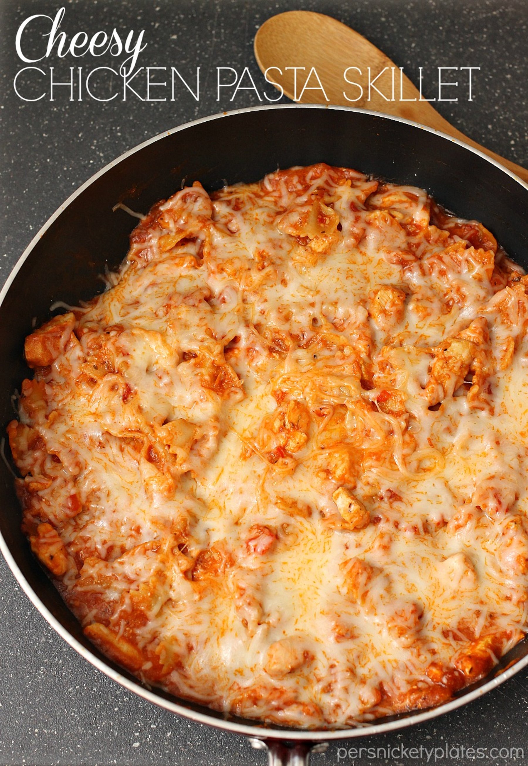One pot cheesy chicken pasta skillet comes together in just about 30 minutes!