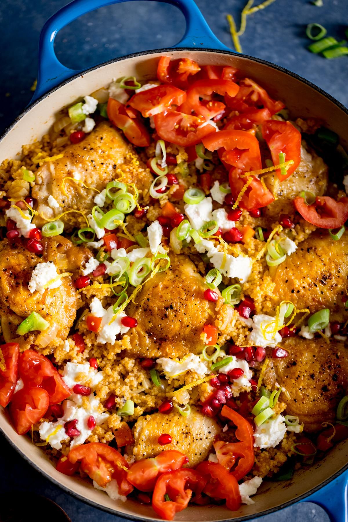 One-Pot Chicken and Couscous with Feta Nicky CorbishleyOctober 14, 2021 85 Kitchen SanctuaryThis one-pot chicken and couscous with feta is a an easy one pan meal, bursting with flavour!One-Pot Chicken and Couscous with fetaSee the full directions on my site