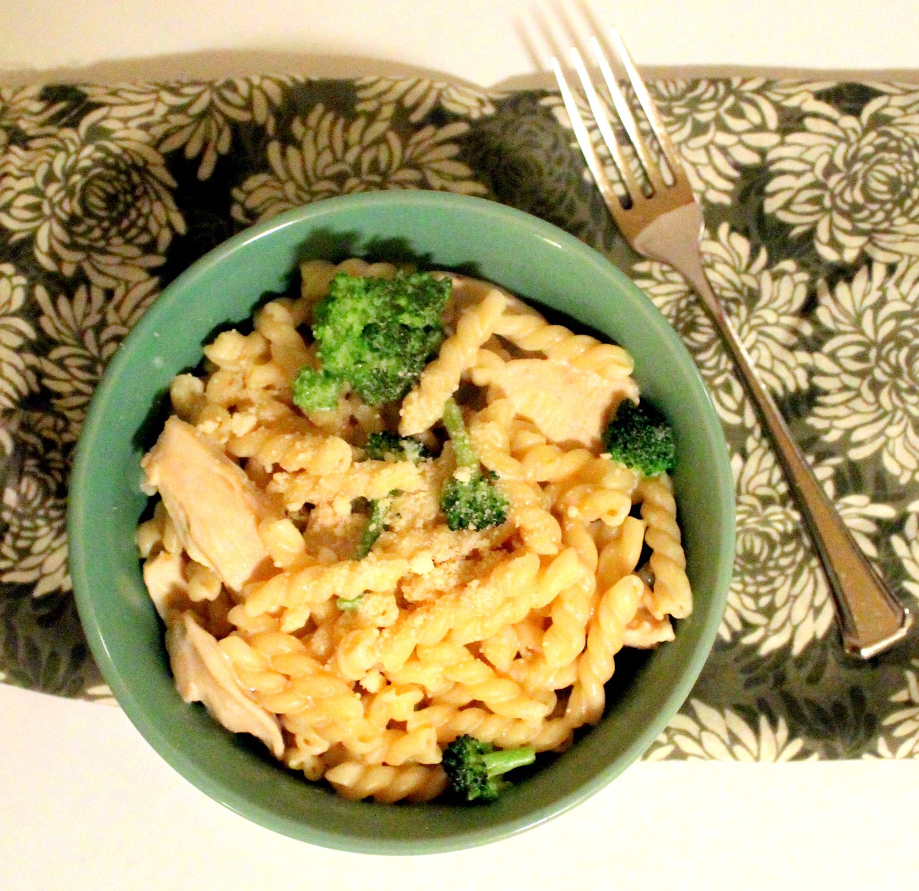 The perfect quick comfort meal for winter. Creamy sauce, pasta, fresh broccoli and chicken make a complete meal in one pan.