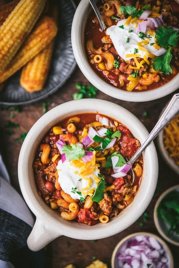 With just 10 minutes of prep and a few pantry staples, this one pot chili mac is a quick and easy dinner recipe that kids and adults will love! Top each bowl with cheddar cheese, sour cream, and diced onion, and serve it alongside a salad, cornbread, or biscuits. The made from scratch pasta and ground beef skillet is always a weeknight winner!