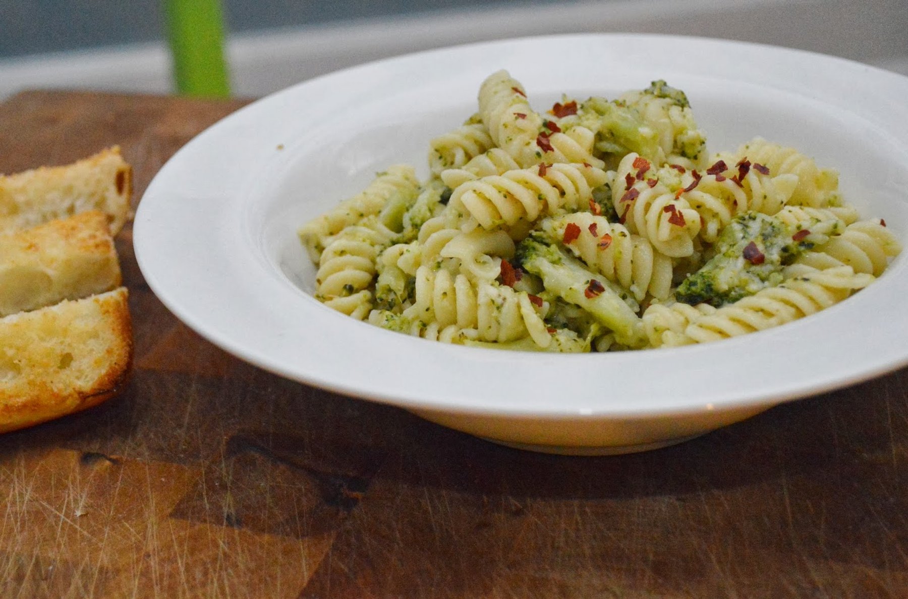 Bring water to boil in a large pot. Cook pasta, according to package, but about 6 minutes shy of al dente. Add the broccoli florets and cook pasta and broccoli together until pasta is al dente. Drain and...