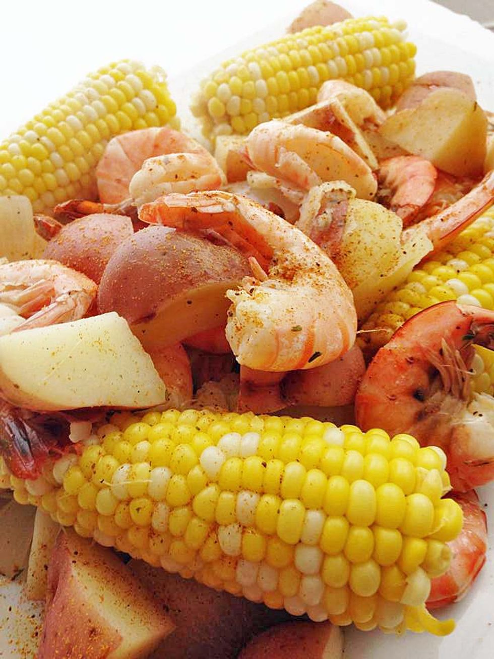 Juicy Shrimp with Creamy Potatoes and Fresh Corn