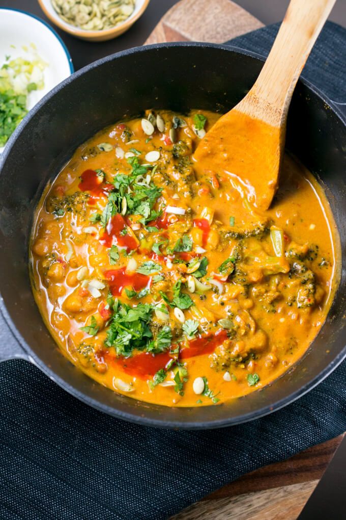 Heat the olive oil in a pot over medium heat, Add the shallot with a pinch of salt, and stir frequently until starting to brown, 3-5 minutes. Add the ginger, garlic, and chili, and cook for another 30...