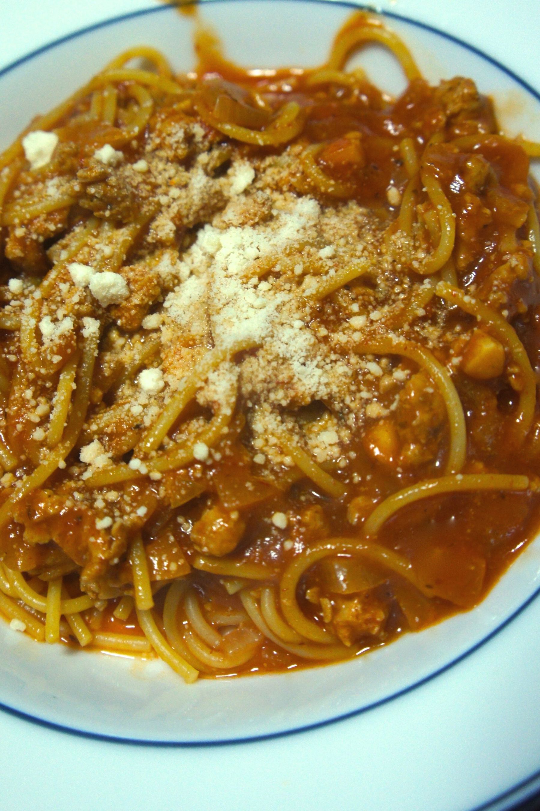 In a medium pot, cook the ground turkey, onion, red pepper flakes and black pepper until the turkey is almost done and onions are tender.