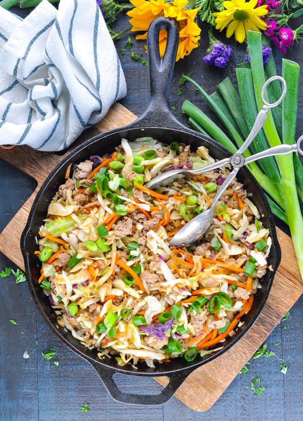 All of the delicious flavors of your favorite fried Chinese restaurant appetizer come together in a lighter, faster, one skillet meal! This "Egg Roll in a Bowl" is a quick and healthy dinner that's ready in about 20 minutes!