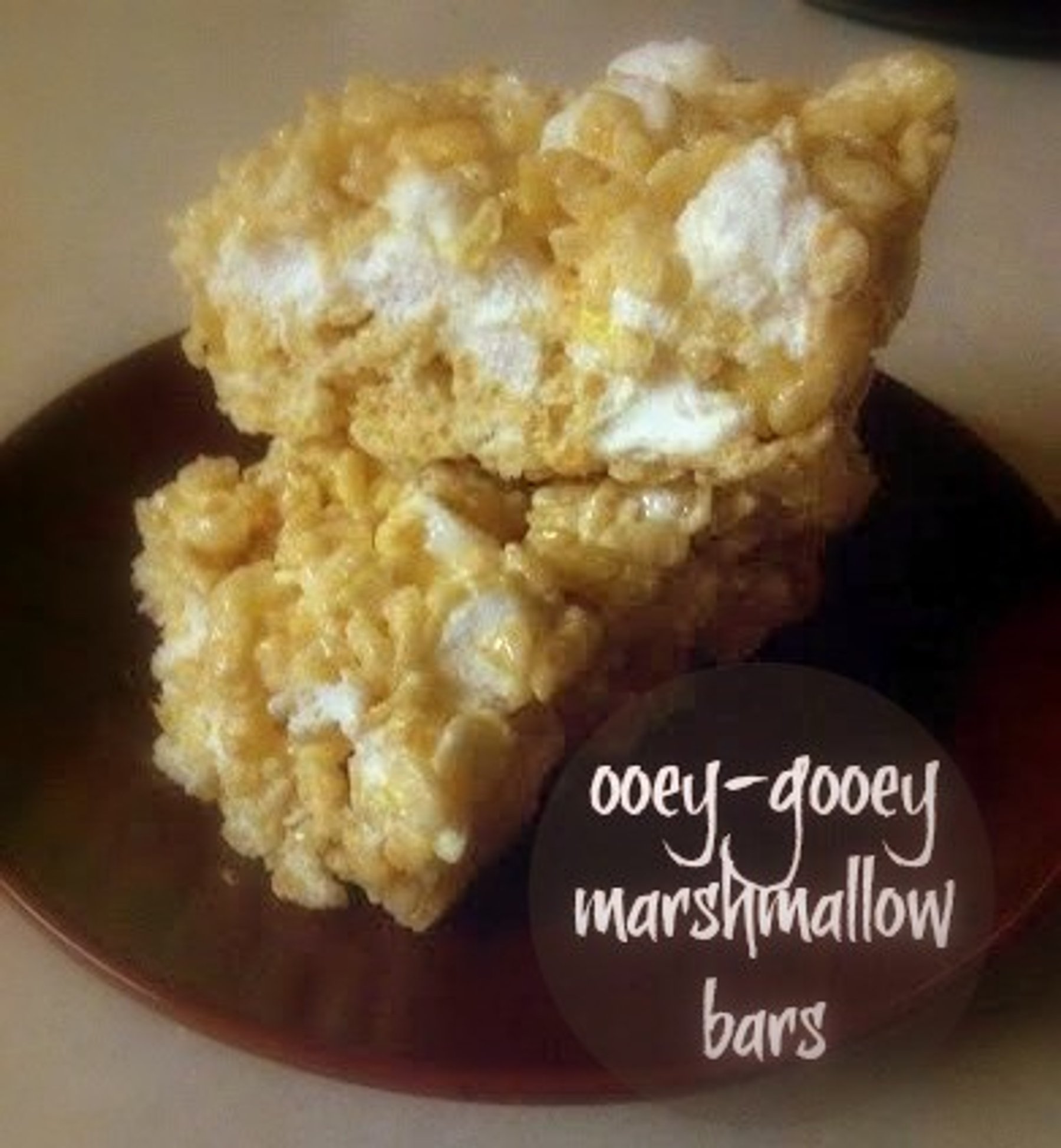 Delicious, soft and marhsmallow-y bars studded with mini marshmallows that haven't melted completely. We made these sort of by accident (thanks to my 5 year-old daughter's measuring methods) and now they are our favorite snack! They are inexpensive to make, which makes it even better!