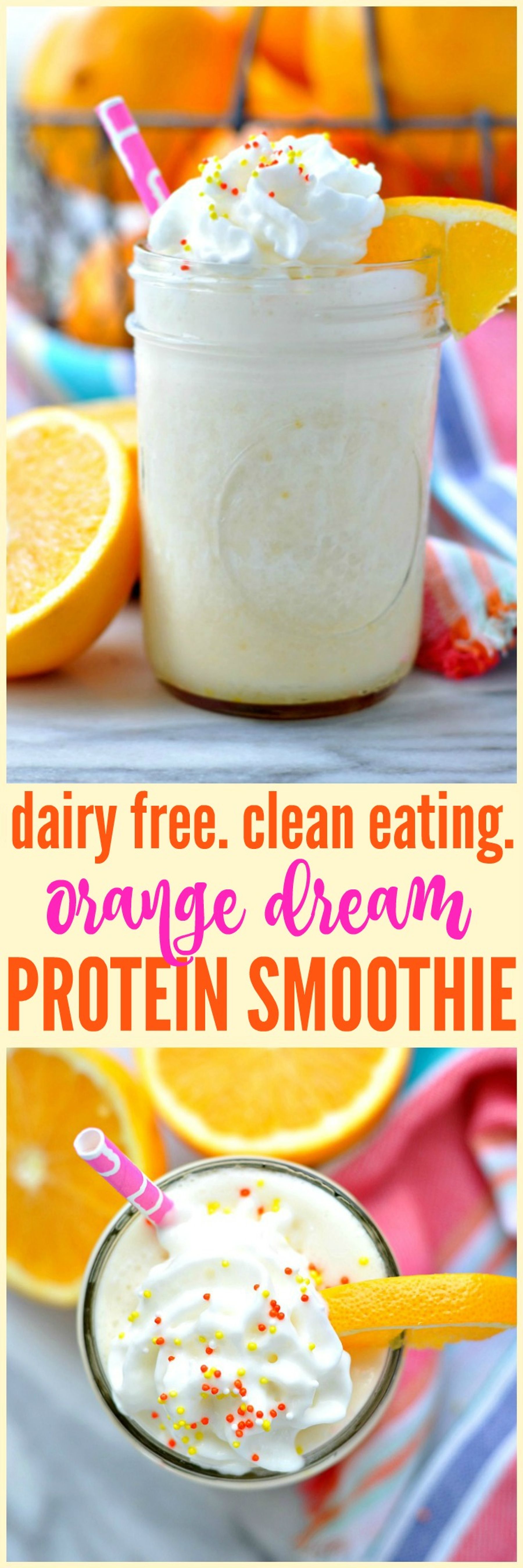 A thick, creamy, and refreshing Orange Dream Protein Smoothie is the perfect healthy breakfast for busy mornings! Packed with bright citrus, warm vanilla, and plenty of protein, this is a dairy-free clean eating breakfast that tastes like a delicious treat!