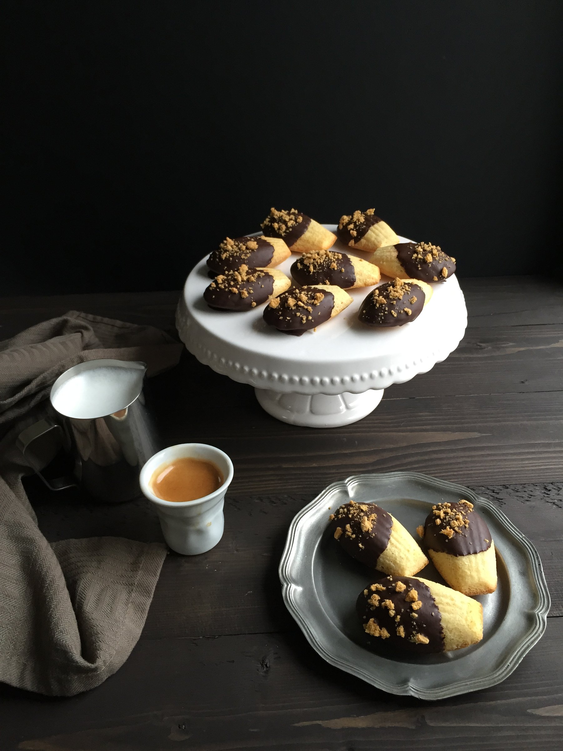 Orange Madeleines with Dark Chocolate & Honeycomb Candy