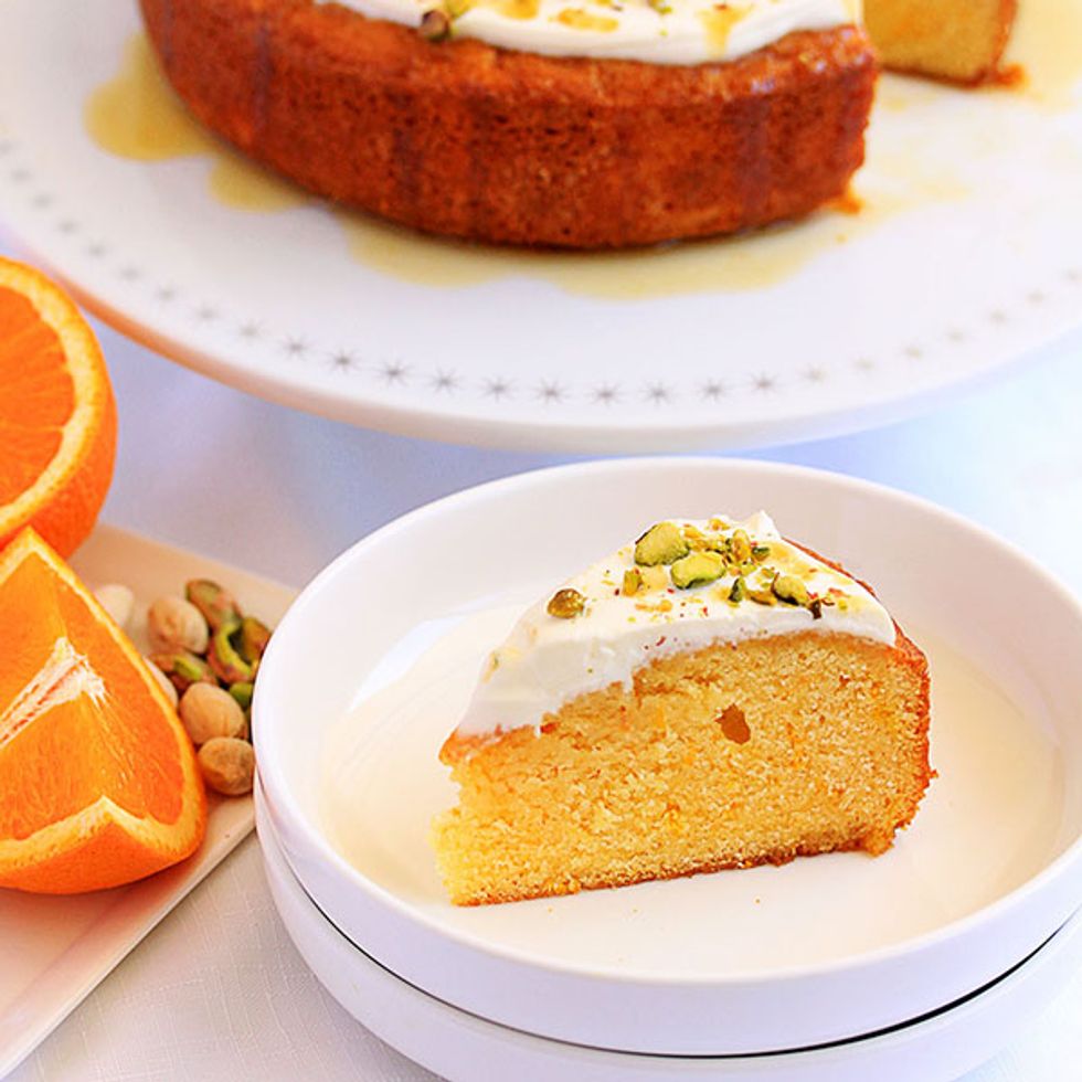 Orange Semolina Cake with Yoghurt and Pistachios. Easy recipe for a zesty, fresh orange cake.