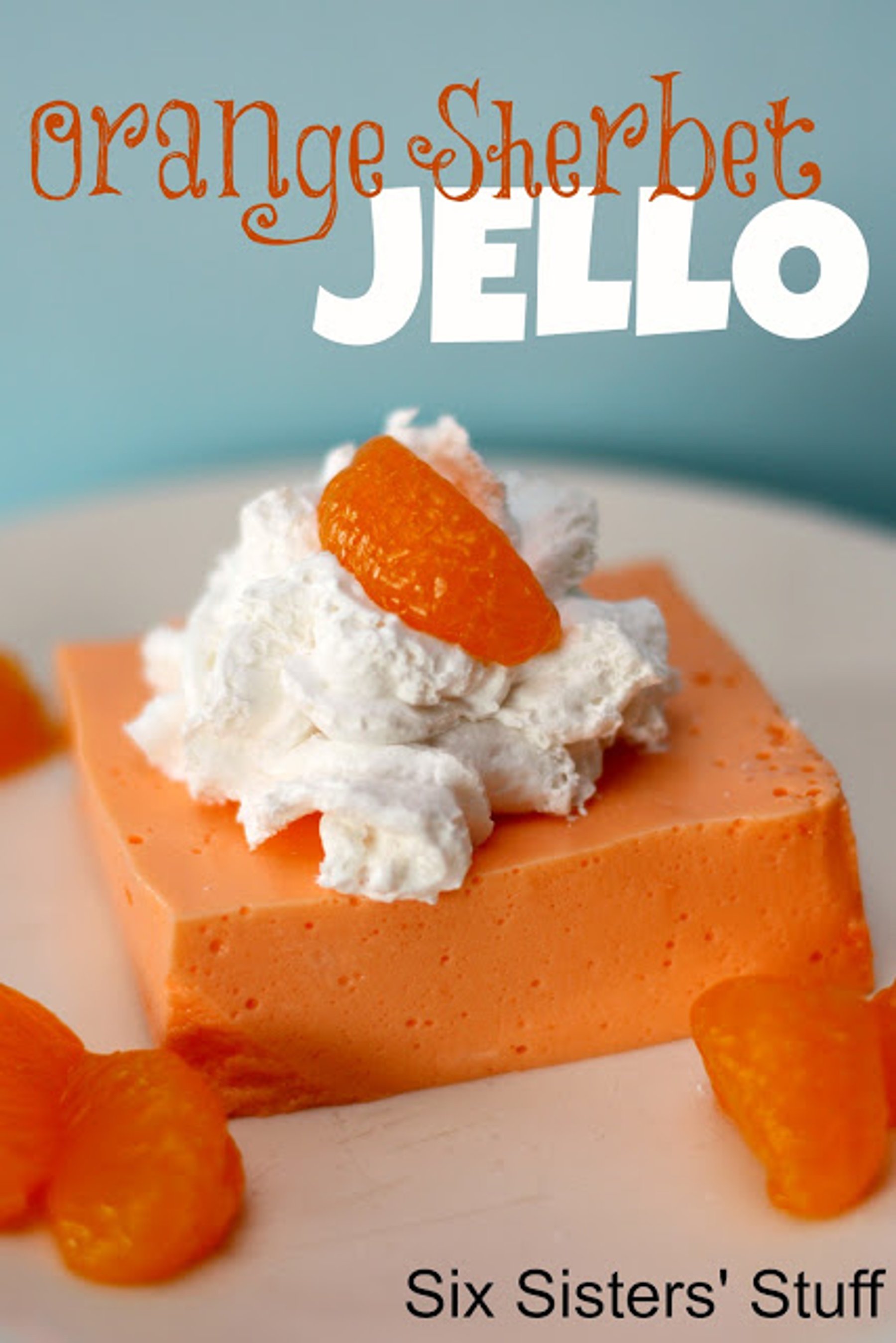 Boil water and remove from heat. Add the 2 packages of orange jello and stir until dissolved. Set jello aside and let it cool for a couple of minutes.