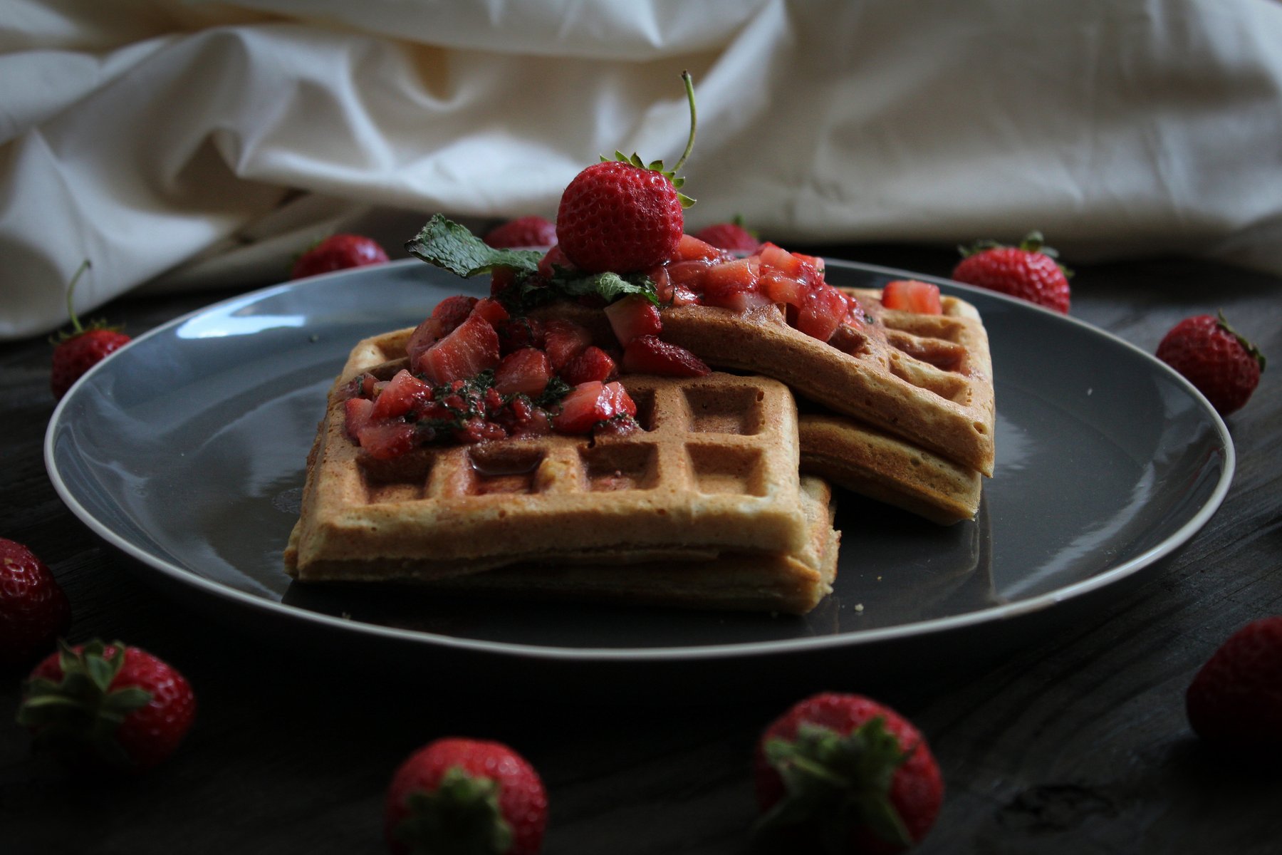 At last, I have created the orange zest ricotta waffle with strawberry, black pepper compote essential to any lazy weekend morning. Though this doesn\\\'t appear to be the most simple recipe, it does provide you with all of the elements for a sweet, fluffy Sunday morning. In order to achieve a well earned balance of a crispy outside and custardy inside, it is vital to follow the steps accordingly as there is a science behind the madness of Culinary.