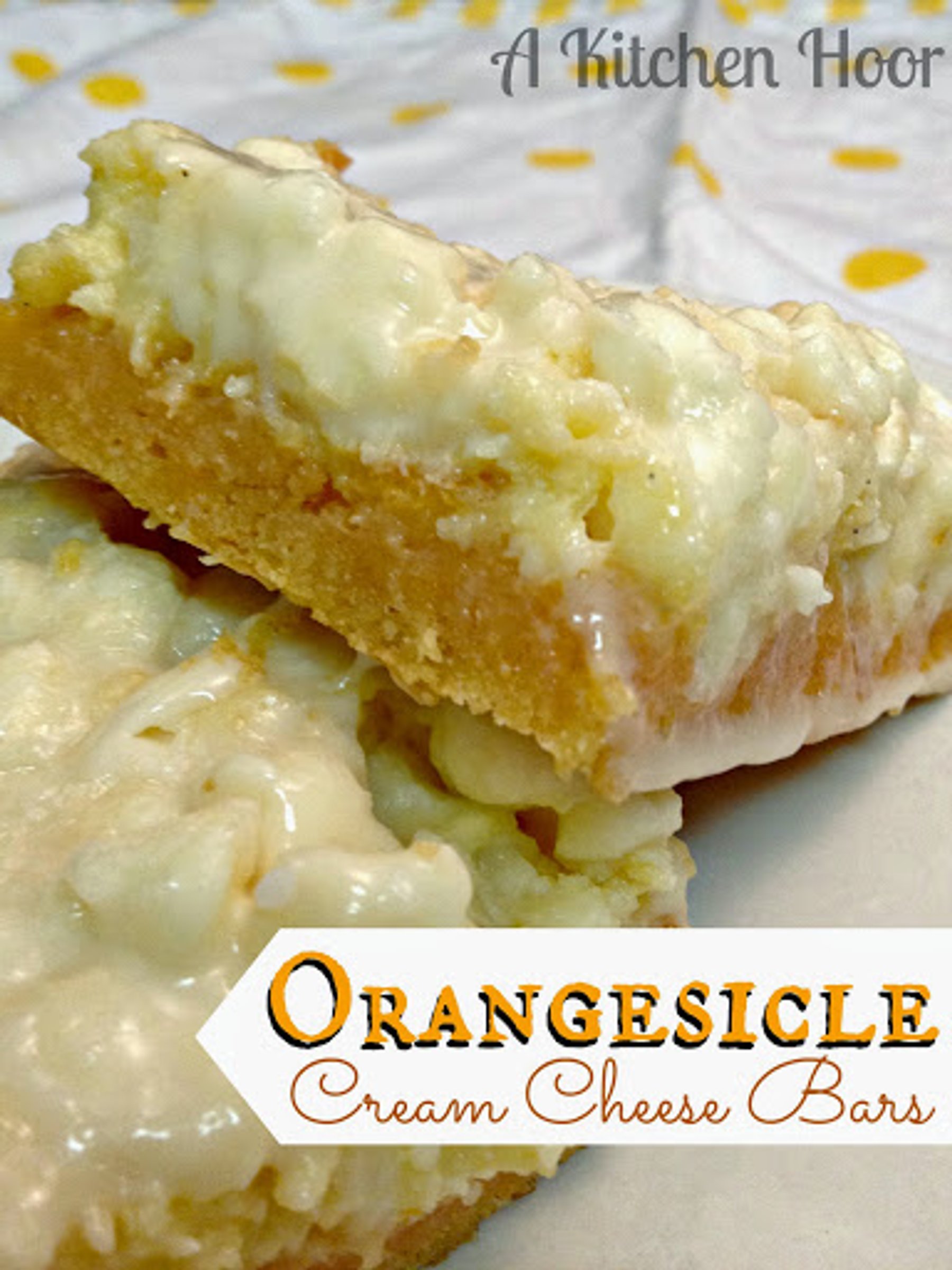 Orange falvored cookie mix is the crust for these tasty cream cheese bars.