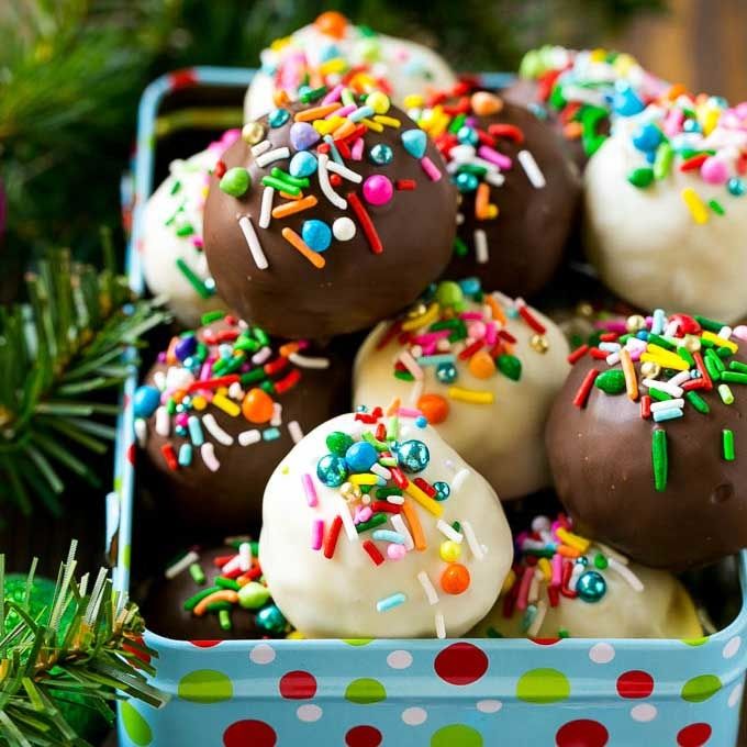 This recipe for Oreo balls is Oreo cookie filled truffles dipped in chocolate, then decorated in a variety of sprinkles. Oreo balls are perfect for gift giving around the holidays and also make great party favors.