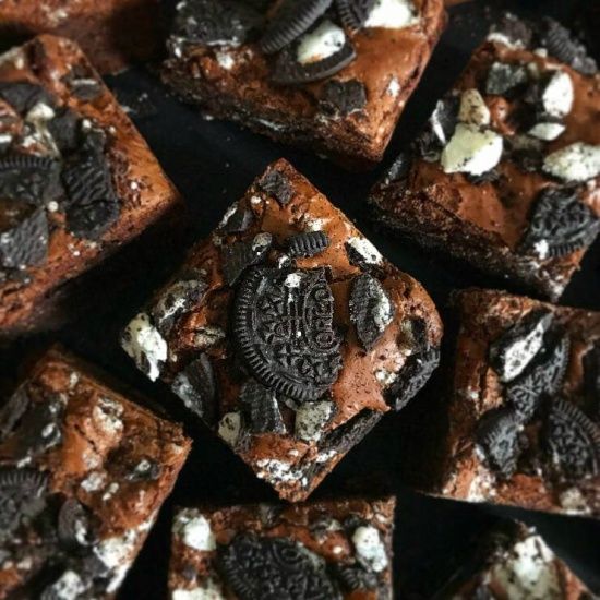 This recipe combines two of my favorite things Oreos and Brownies. These brownies are soft, chewy and fudgy. In addition to that these brownies have a layer of Oreos in the middle and the top of the brownies are decorated with chopped Oreos!
