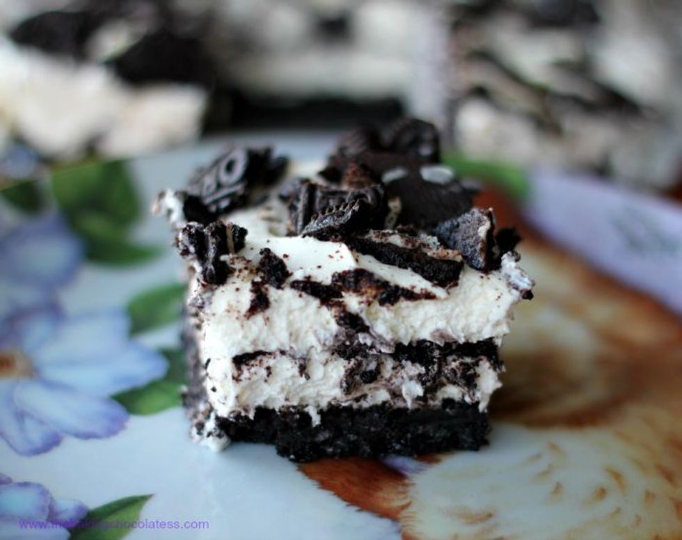 Does it get any better? Light, creamy, delightful cheesecake bars stuffed with OREO cookies from top to bottom! Refrigerate or freeze this no bake dessert, serve and enjoy!