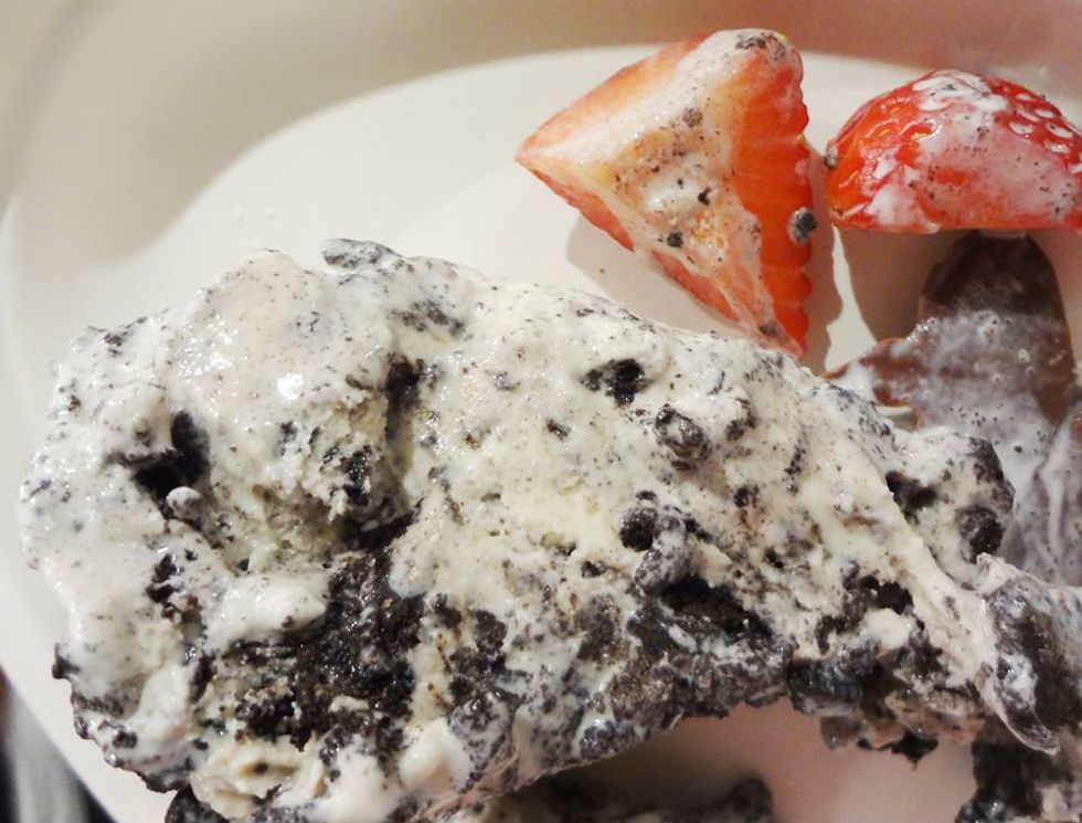 1 package Oreos, 3 pints vanilla or cookies n' cream ice cream, 3 tbsp melted butter