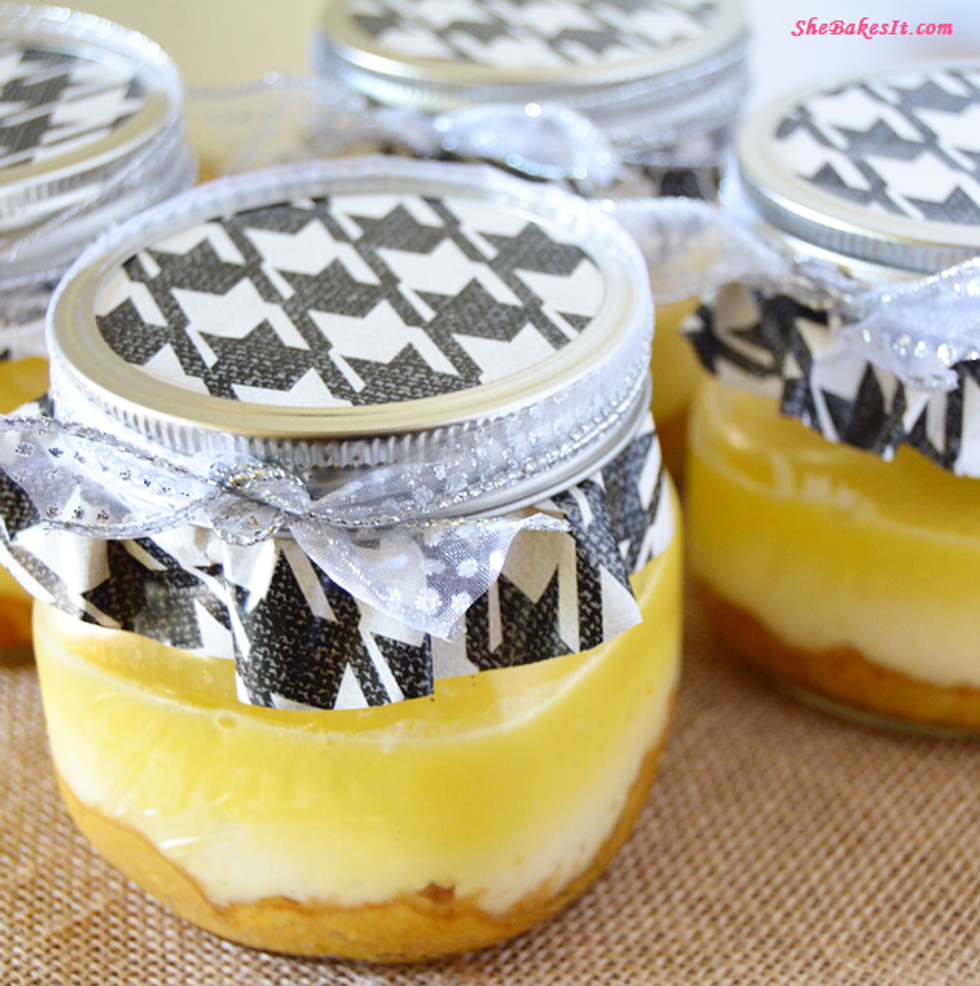 If you love lemons, this recipe is for you! It is a creamy cheesecake with a lemon cookie crust and a tangy lemon curd topping. This can be made into a whole cheesecake but since I am giving these away as gifts, I figured, being the southern girl that I am, why not put them in mason jars.