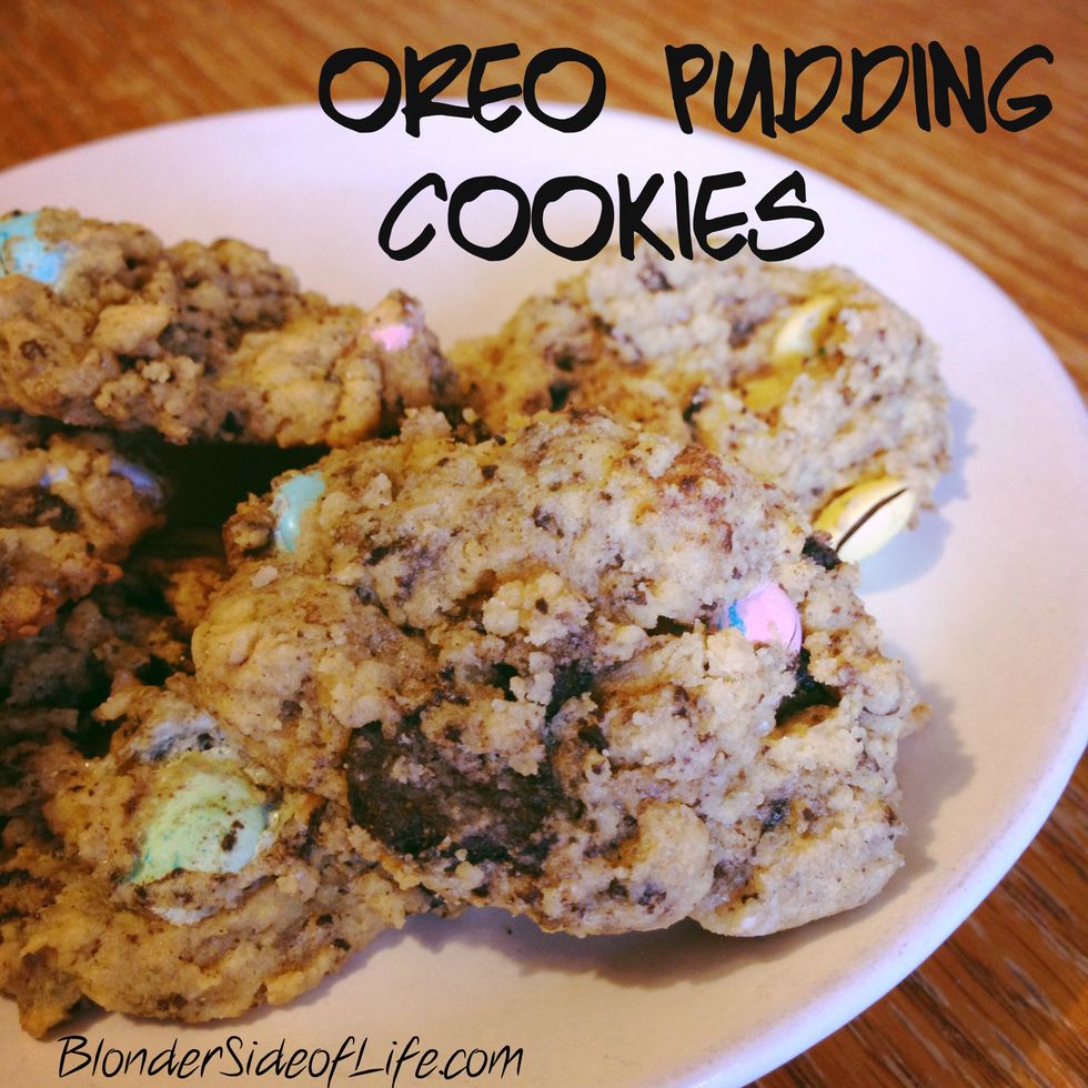flour, sugar, oreos, vanilla pudding, M&Ms, butter, brown sugar, eggs, vanilla, bakins soda, salt