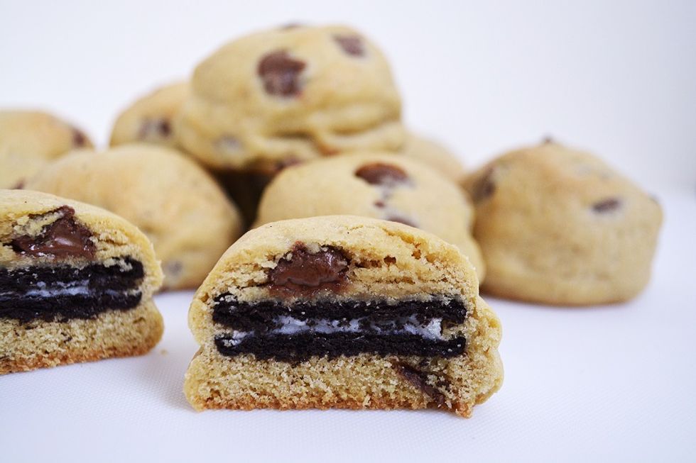 A soft, chewy and dense chocolate chip cookie with a whole Oreo baked inside. This is a definite winner.