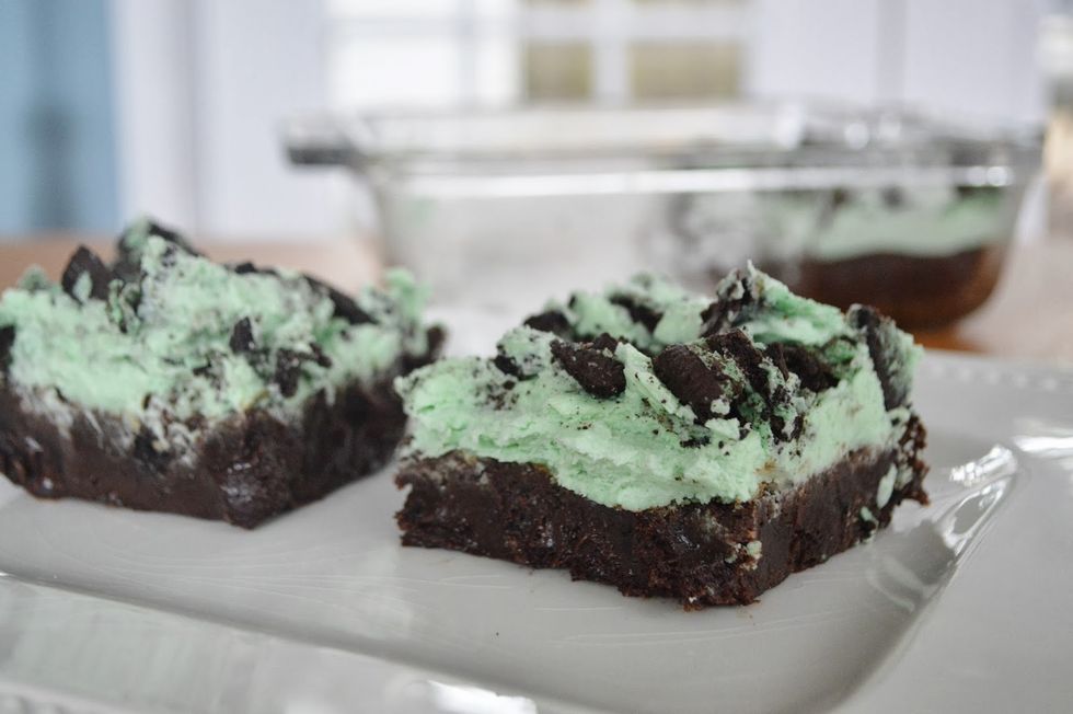 Grease an 8 x 8-inch pan with non-stick cooking spray. Preheat oven and prepare brownies according to package directions, adding the 6 crushed Oreos to the batter. Bake until just done or a little...
