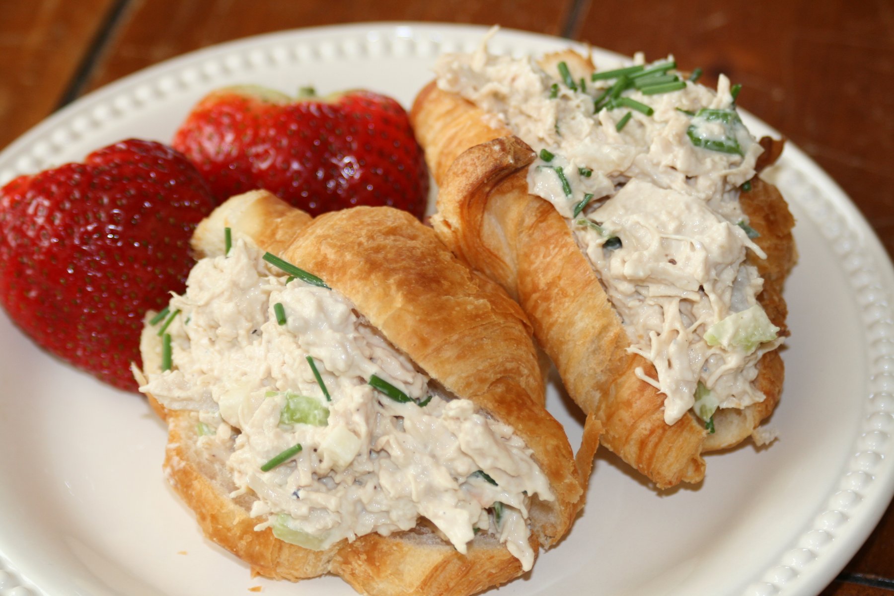 The most delicious chicken salad you'll ever have, served inside buttery mini croissants! Visit my blog for a lower calorie version, too!