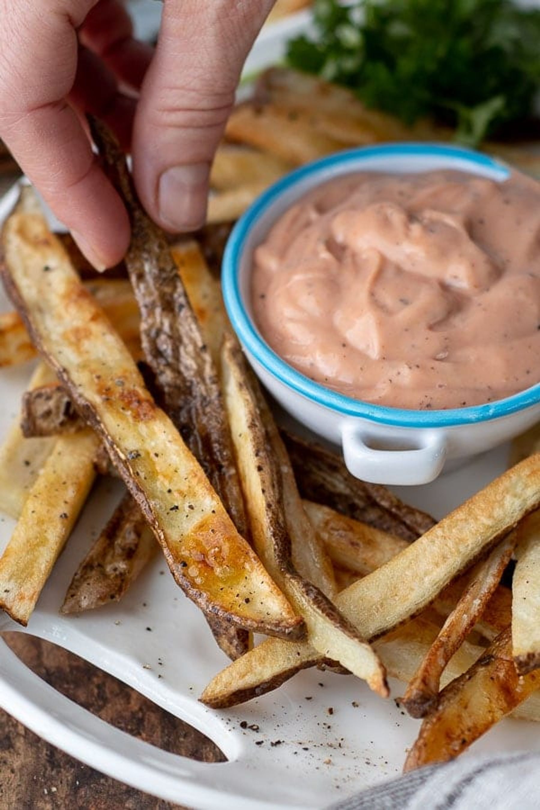 Oven Baked Fries recipe shows you how to make CRISPY baked french fries. This healthy alternative is divine dipped in the included fry sauce recipe.