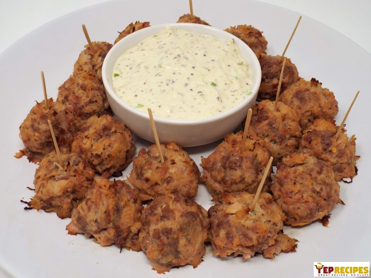 These are a cross between German Sauerkraut balls and meatballs, served with an apple horseradish mustard sauce.