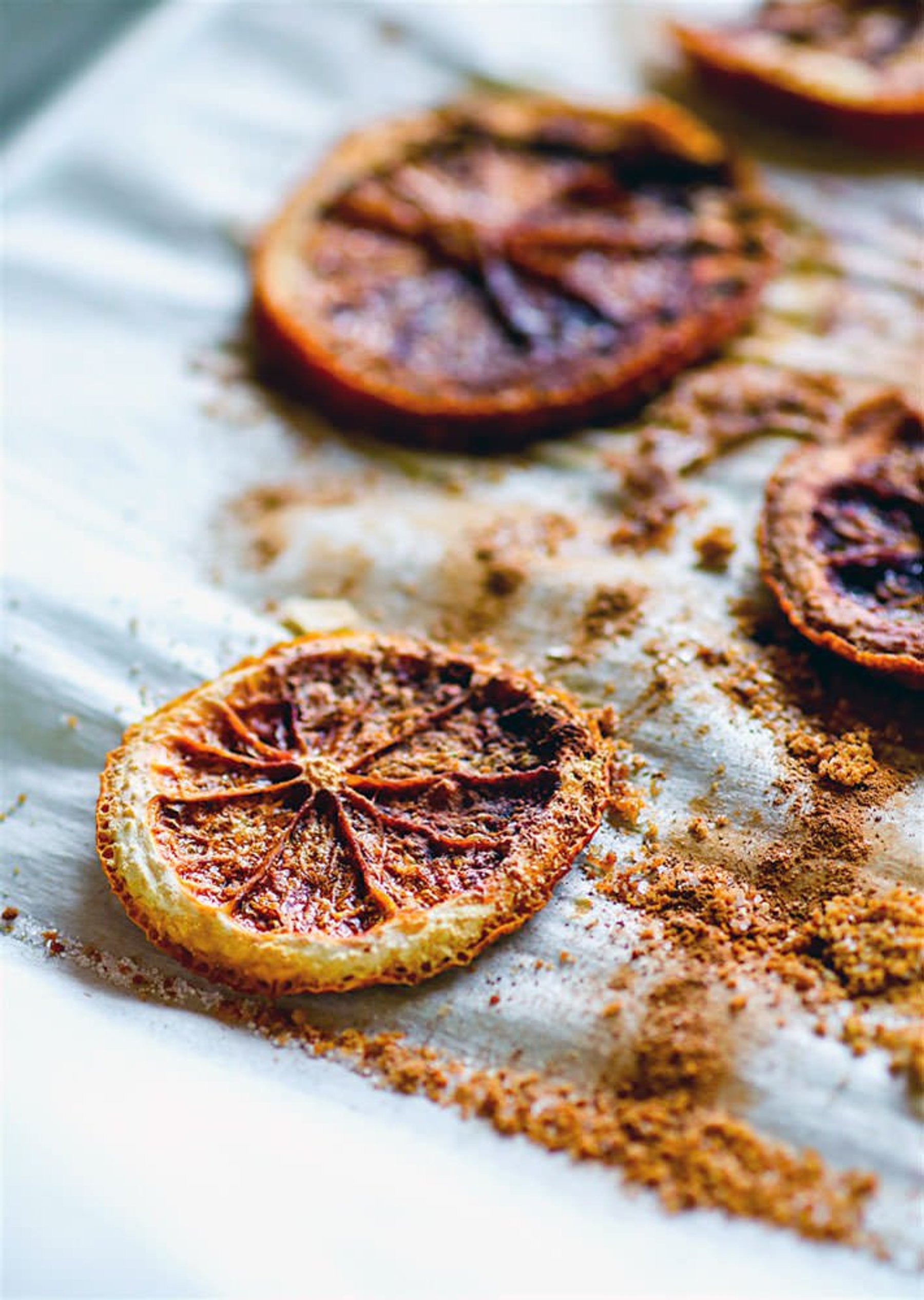 Oven dried orange slices. Slightly sweetened oven dried orange slices sprinkled with spices and coconut sugar. Paleo and Vegan friendly! Great with cocktails, garnishing, or adding to cereals. Easy to make with a few healthy ingredients.