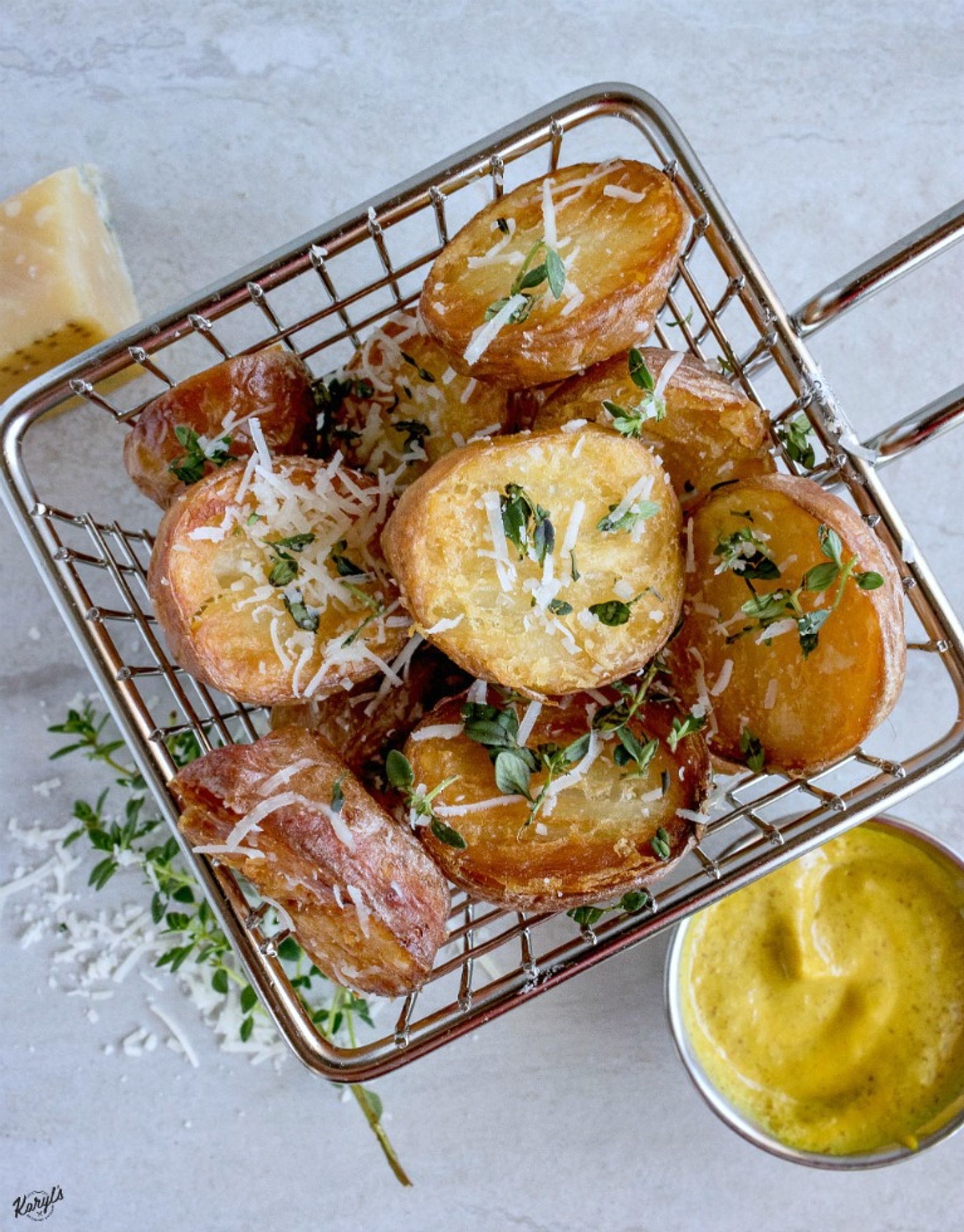 Skip the deep fryer, but keep the crispy skin and fluffy interior with these Oven Roasted Potatoes. Season with fresh-grated parmesan and fresh herbs for a scrumptious side dish or snack