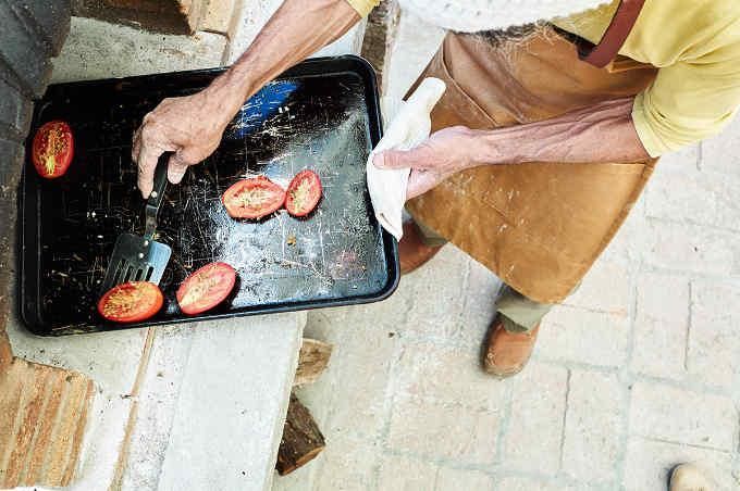 Recipe for oven-roasted tomatoes with requesón and almonds shared with the Mexican Food Journal by Luis Perez, head of the Permaculture project at the Waldorf Árbol de Vida school in San Miguel de Allende, Guanajuato, Mexico. This is a simple recipe that he teaches to the younger students.