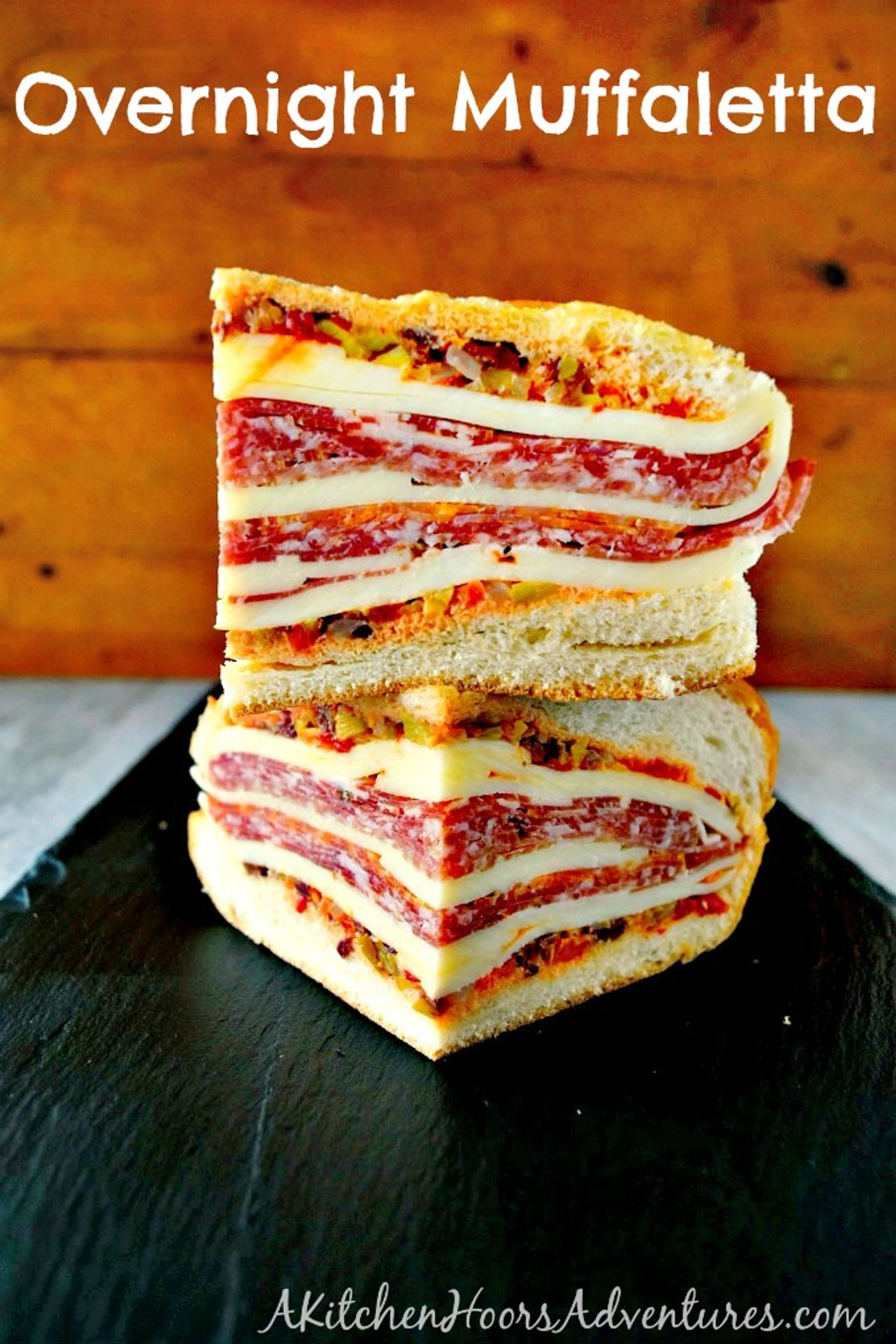 This is a muffaletta you could easy make for a crowd or a picnic. Overnight Muffaletta Sandwich is quick to make but tastes oh so delicious! Laissez les bons temps rouler!!