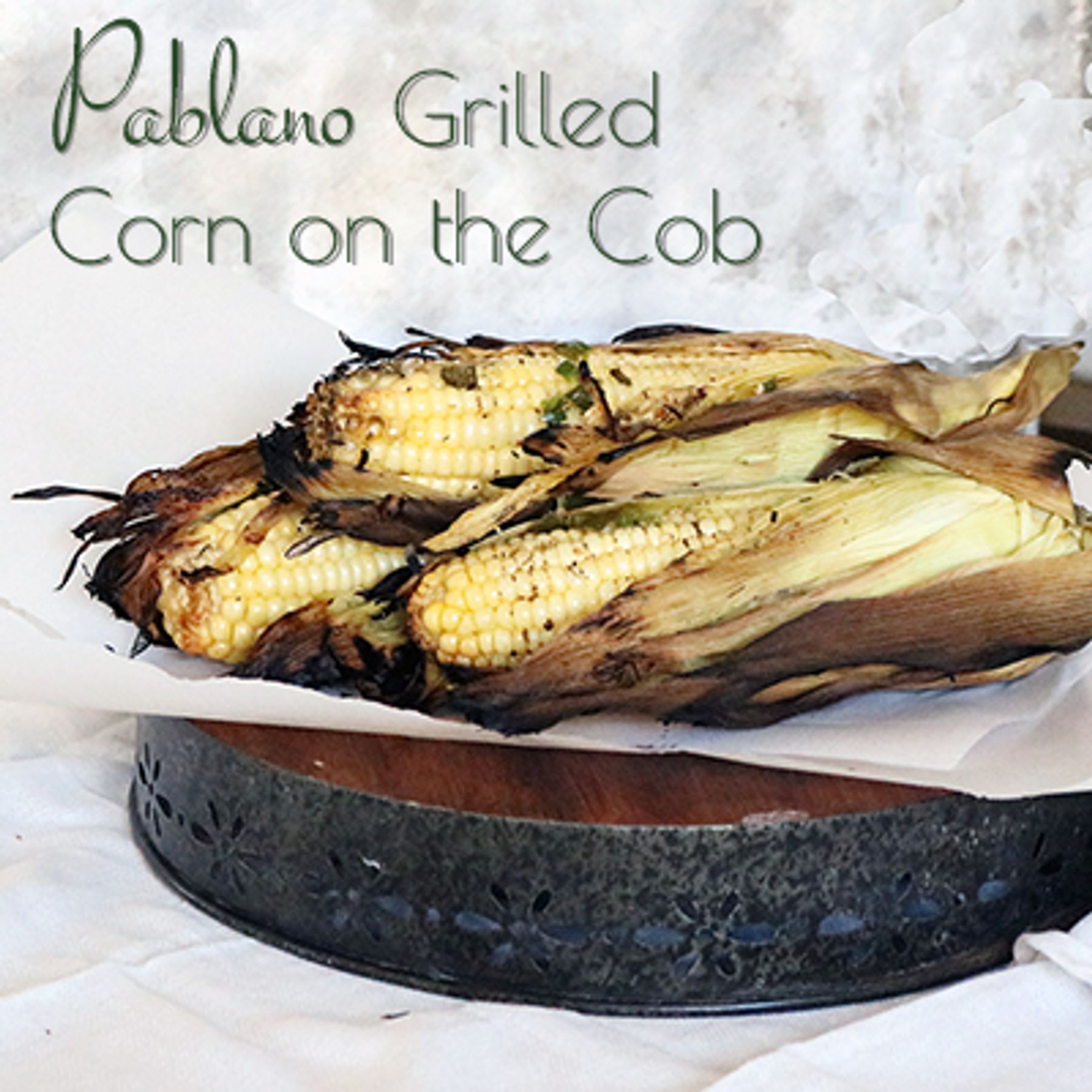 Pablano Grilled Corn on the Cob – sweet on the cob corn seasoned with garlic, butter and pablano peppers and grilled in the husk. It is an absolute necessary side dish to have at any fiesta or BBQ party you host!