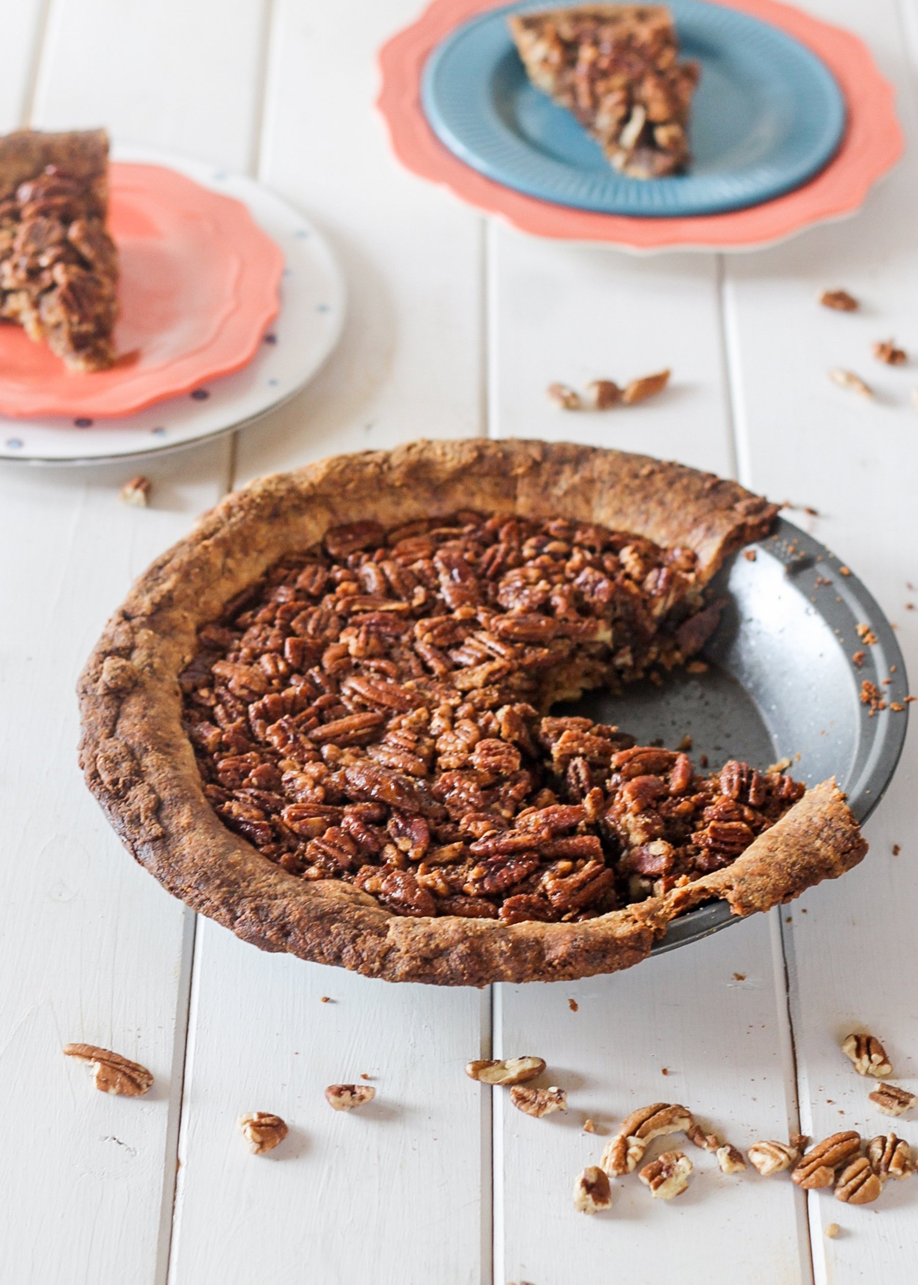 This Paleo Pecan Pie is gluten-free, grain-free, and refined sugar-free, with the best, flakiest Paleo pie crust I've had!