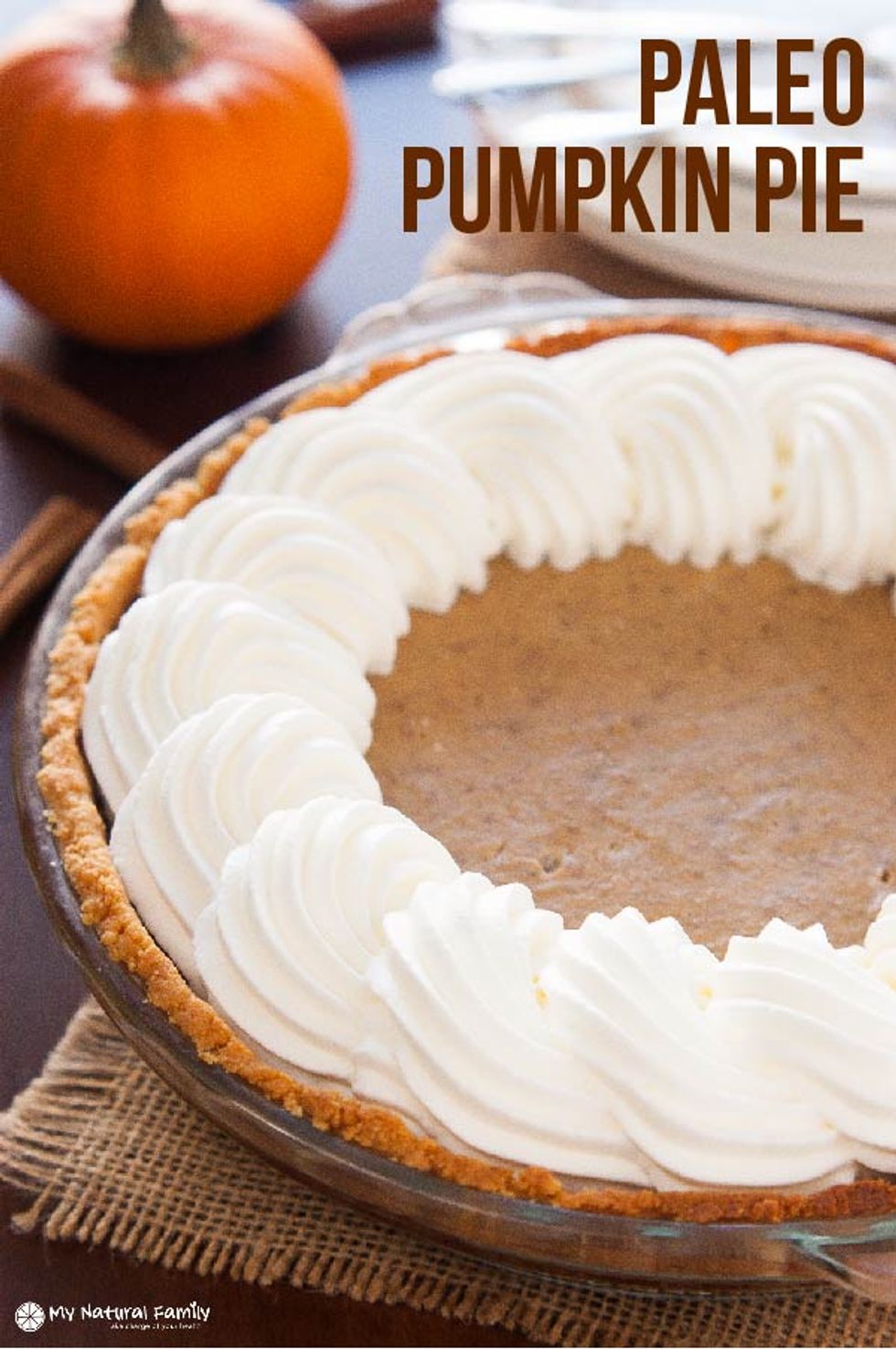 The crust for this Paleo pumpkin pie is super easy to make and involves only a few ingredients. The pumpkin custard is firm and full of autumn spice! The topping is made of a slightly honey sweetened coconut cream that goes so nicely with the almond crust.