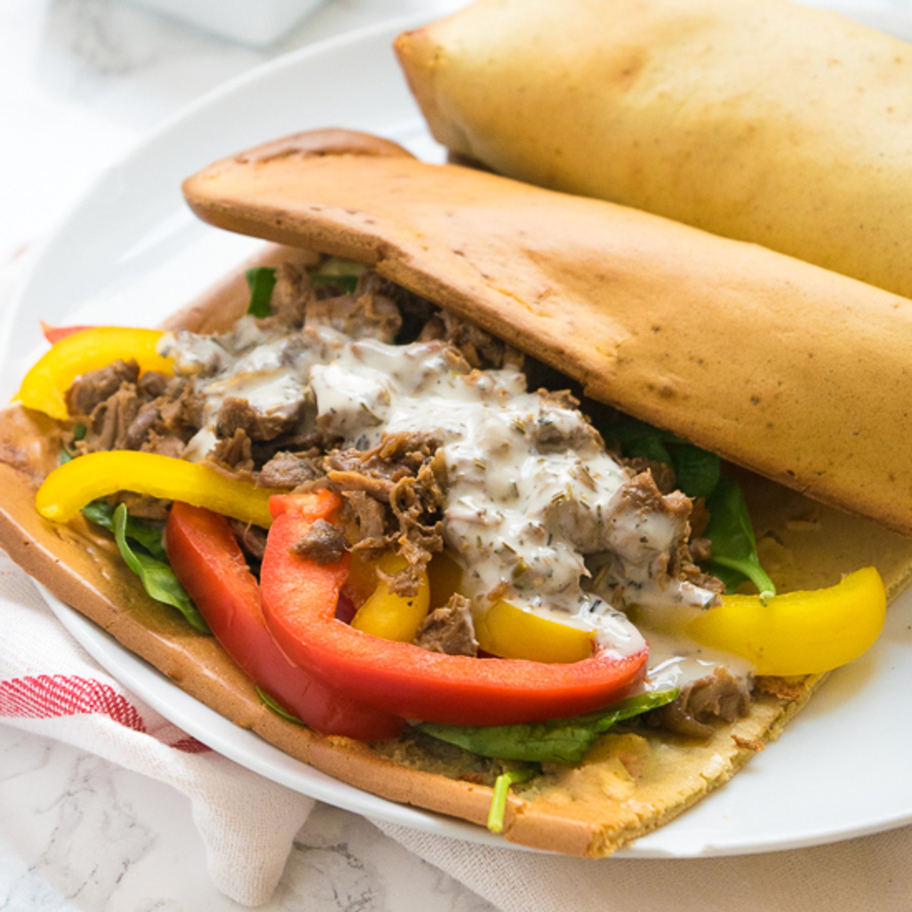 Paleo Slow Cooked Pulled Lamb Wraps with a Creamy Garlic, Rosemary & Mint Sauce. Perfect for a “gourmet” lunch or dinner