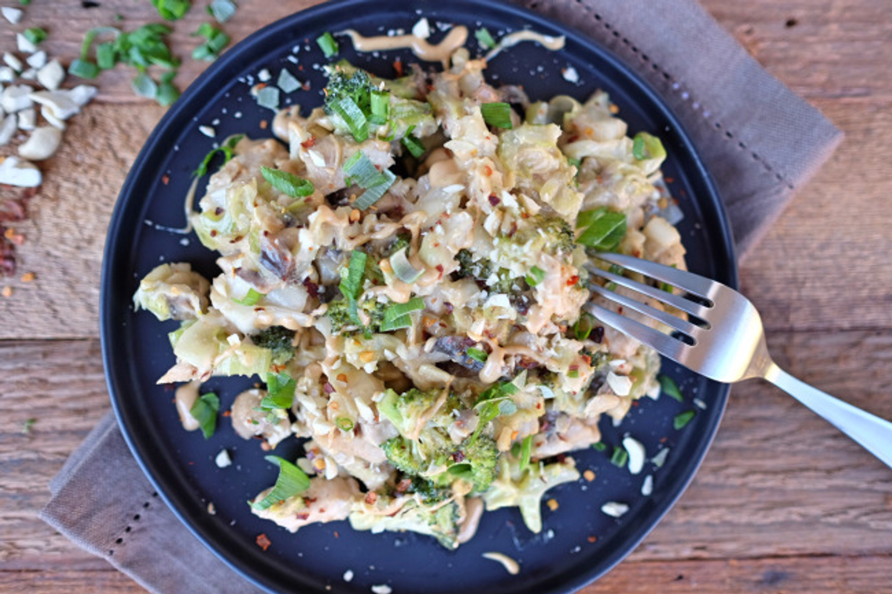 This paleo spicy thai chicken stir fry is a quick dinner with many different fresh flavors. It has a slightly tangy flavor with some spice to it and the cashew butter provides an almost peanut-like flavoring that reminds me of Pad Thai. Don’t be afraid of the long list of ingredients, everything can be prepped in about 15 minutes and the stir-fry cooks quickly.
