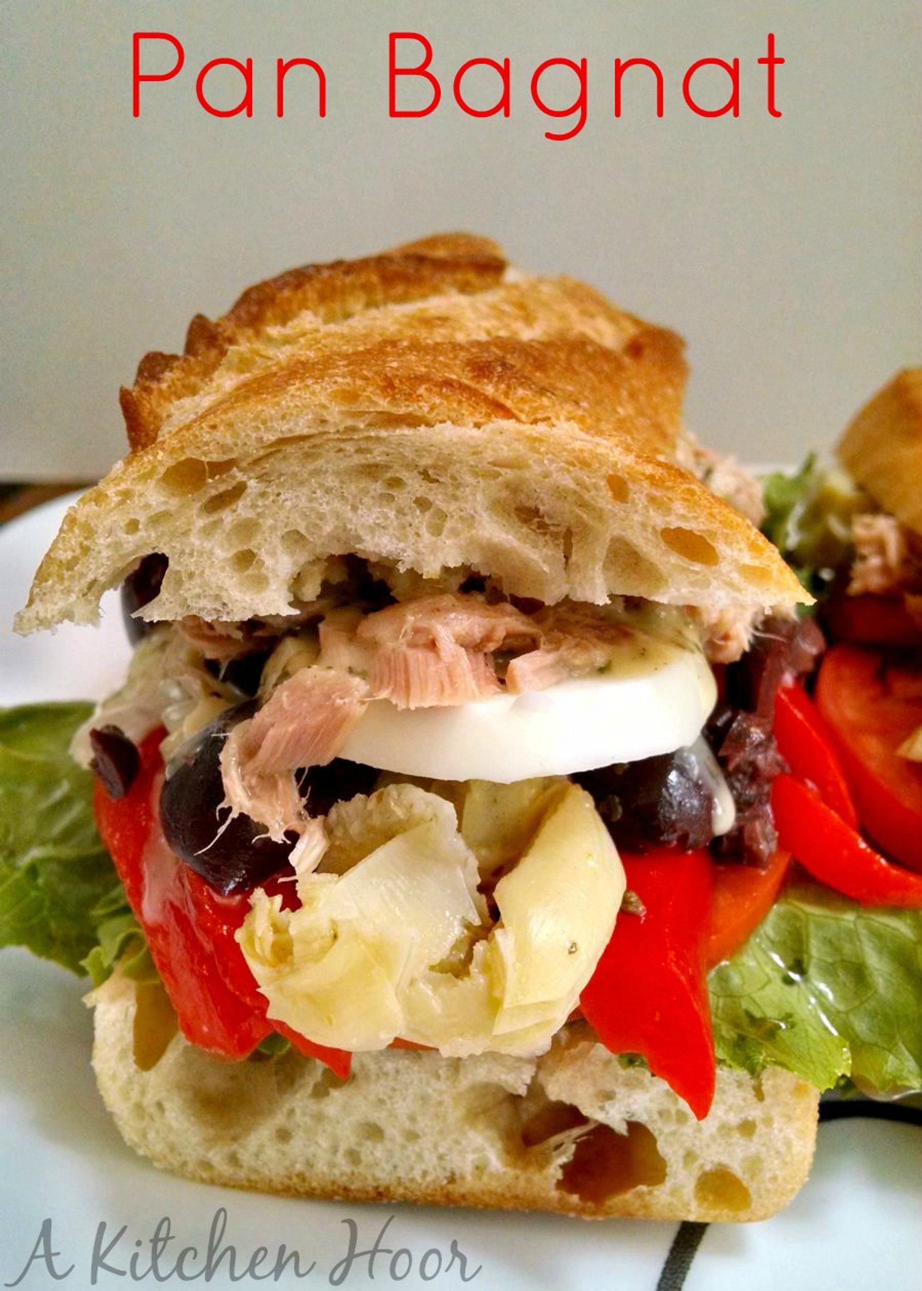 This delicious sandwich is MADE for picnics! You allow all the juices to soak into the bread before you eat it. Pan Bagnat is the essential picnic Sammie!