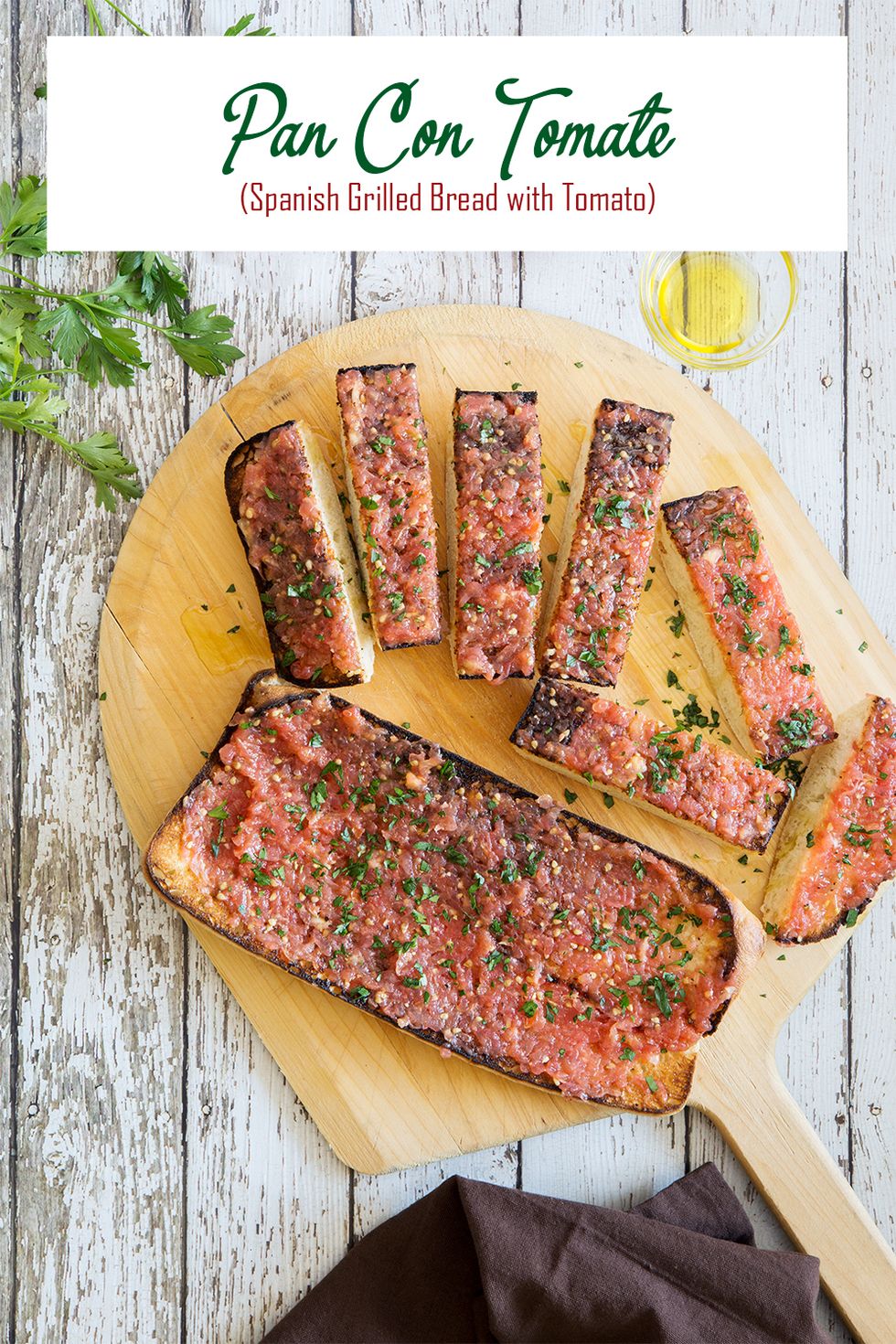 A beautiful, traditional Spanish tapa. Pan con tomate (bread with tomato), is a rustic dish with big Spanish flavor, and simple ingredients.